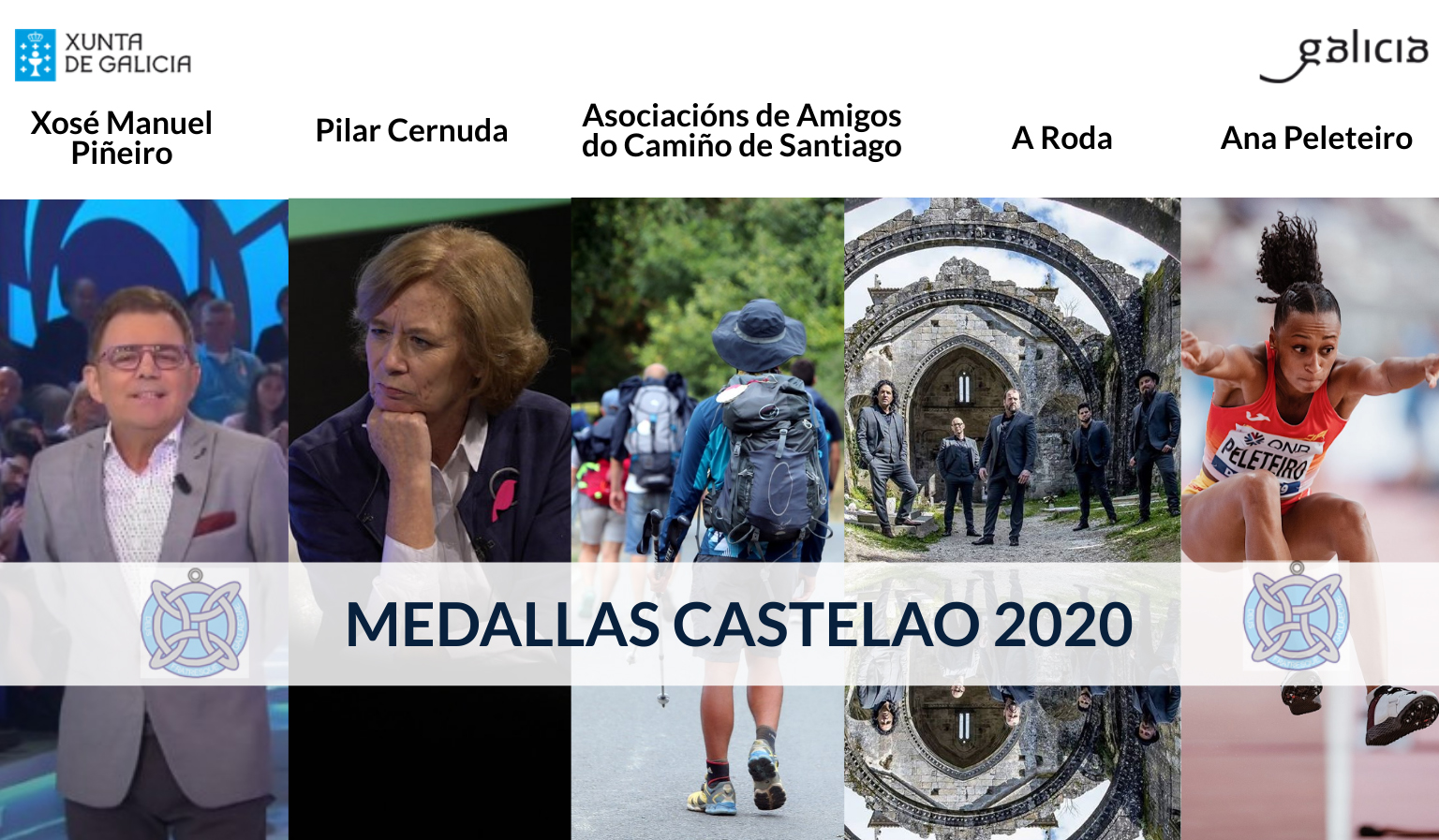 - El grupo de música tradicional A Roda, las Asociaciones de Amigos del Camino de Santiago, Pilar Cernuda, Xosé Manuel Piñeiro y Ana Peleteiro, galardonados con la Medalla Castelao 2020