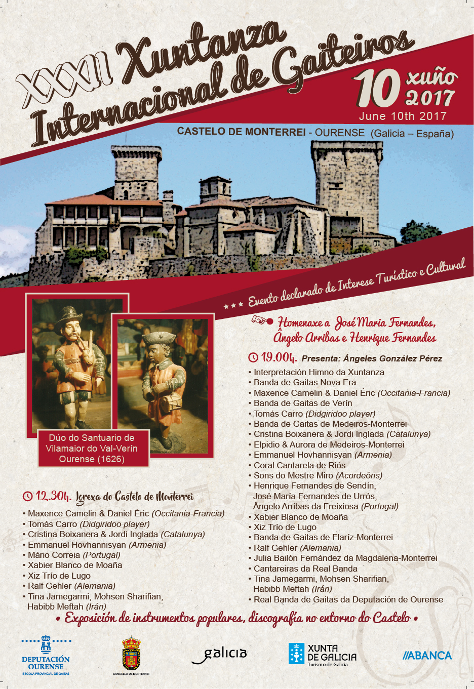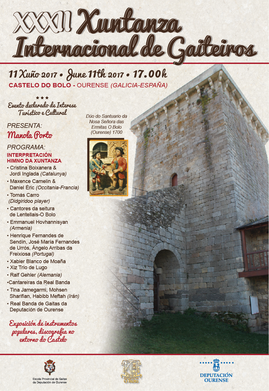 Los castillos de O Bolo y de Monterrei acogerán el sábado y domingo, 10 y 11 de junio de 2017, la XXXII “Xuntanza Internacional de Gaiteiros”, organizada por la Diputación de Ourense. Se trata de un evento que fue declarado de “Interés turístico y cultural”.