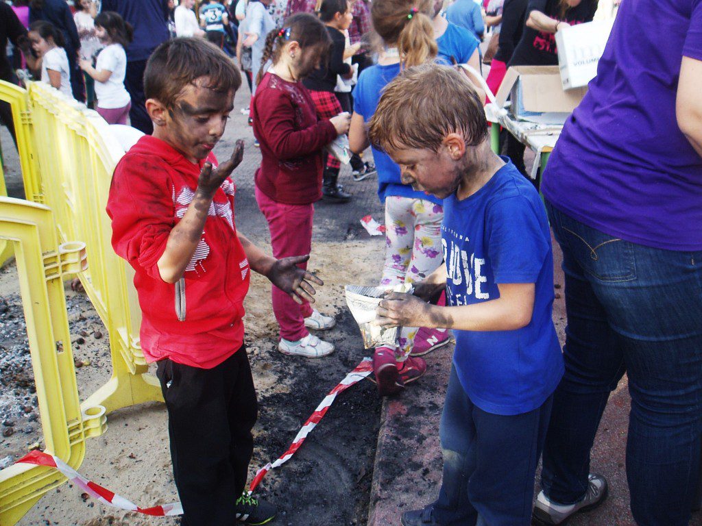 Los más pequeños realizaron juegos con las castañas y, la mayoría, se embadurnó con el hollín, arremolinándose continuamente en el suelo sobre una “manta” de hollín sólo con la finalidad de teñirse a fondo manos y caro. Y todos , tanto alumnos, como profesores y padres lo pasaron en grande, inmortalizando la jornada a través de continuas fotografías.