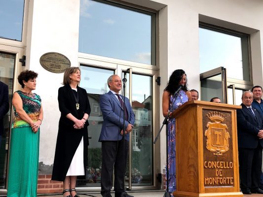 Monforte, é a forma da súa xente, a xente que a ama, naceran aquí ou non, pois é unha cidade de mezclas e mesturas entre pobos e culturas, aberta ó mundo por e para o mundo. Temos, sen dúbida unha cidade que brila con ganas e combinar a tradición ca modernidade é a máis sabia aspiración que pode anhelar o ser humano. Exemplo de iso é a Ribeira Sacra, que ca súa riqueza paisaxística, ca viticultura heroica tivo que volver ás raíces para sobrevivir, expandirse e reivindicar o seu propio carácter. É así cando se consegue o éxito! E xa é un dos máis atractivos lugares de Galicia. Tanto, que como todos sabedes, xa é candidata oficial a ser declarada “Patrimonio de la Humanidade” no 2021… ¡Oxalá se consiga e poidamos celebralo todos xuntos…Pero todo isto non pode cambiar a esencia de Monforte, así que non nos deixemos levar polo ritmo frenético que deshumaniza e recuperemos o talante afectuoso e sabio que nos transmitiron personaxes da nosa literatura como Lois Pereiro, Manuel María, Anxel Fole ou María Mariño. E alégrame especialmente ver que entre estes nomes brila con luz propia o de unha muller, como xa antes o fixo a nosa Rosalía de Castro, porque, sen dúbida ¡estamos na era da mulleres!