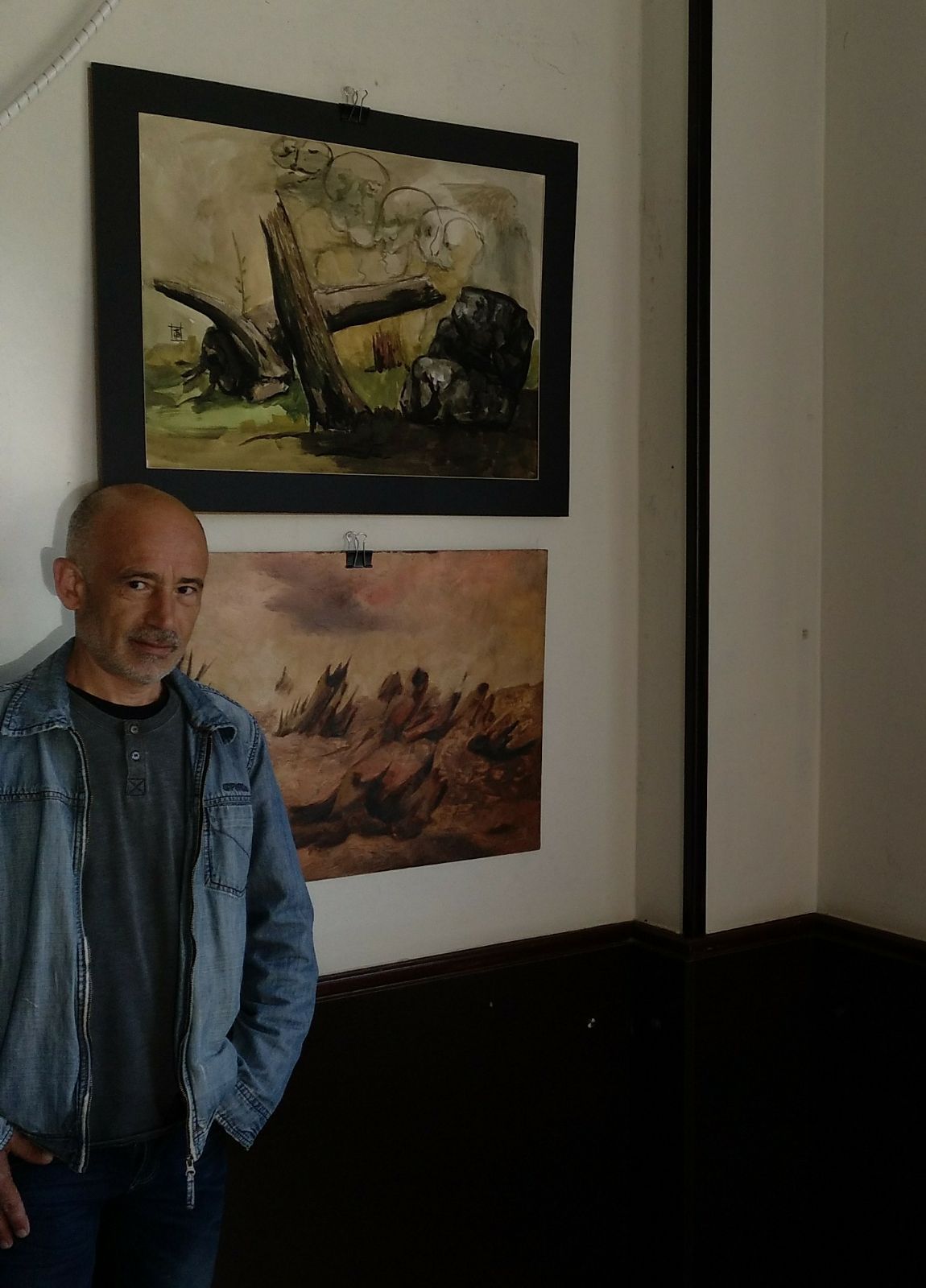 La exposición parte de un cuaderno, de 25 láminas en blanco y negro, que son escenas directas, tipo fotoperiodismo, de la violencia de los hechos del 68, de los manifestantes, etc. Díaz Ferrer vivía en aquél año en París, donde residió 16 años (vivió 30 años en la capital francesa). Después hay otros 19 cuadros en color, en acrílico sobre madera y papel. Se pueden ver escenas de París en el 68, incluso una que presencia desde el balcón de su estudio, que es una especie de saqueo de las tiendas de su barrio con rotura de escaparates. También una pesadilla y un autorretrato, entre otras. Yo invito a visitarla. Vi el catálogo en la casa de su mujer, Micheline Langlois, y me pareció que era muy interesante. Le propuse hacer la exposición al Concello de O Barco y estuvo receptivo a esta iniciativa, asumiendo la “producción” de la exposición. Se ha hecho un catálogo para la exposición con la colaboración desinteresada del diseñador gráfico Joli Domínguez Real, que asumió la maquetación; de José Ramón Castro, que aportó las fotografías y también de Gustavo Docampo, técnico de Cultura del Ayuntamiento de O Barco.