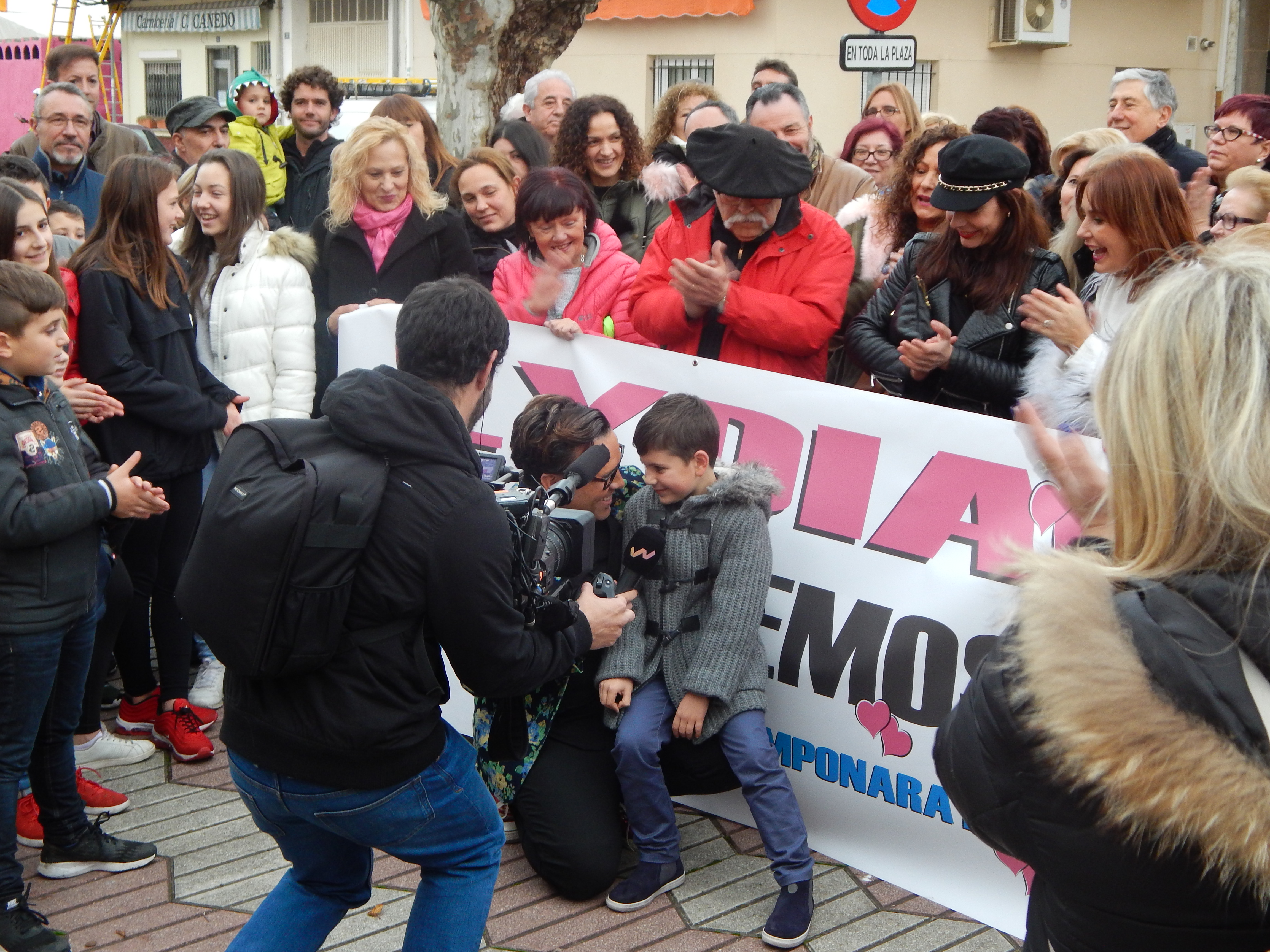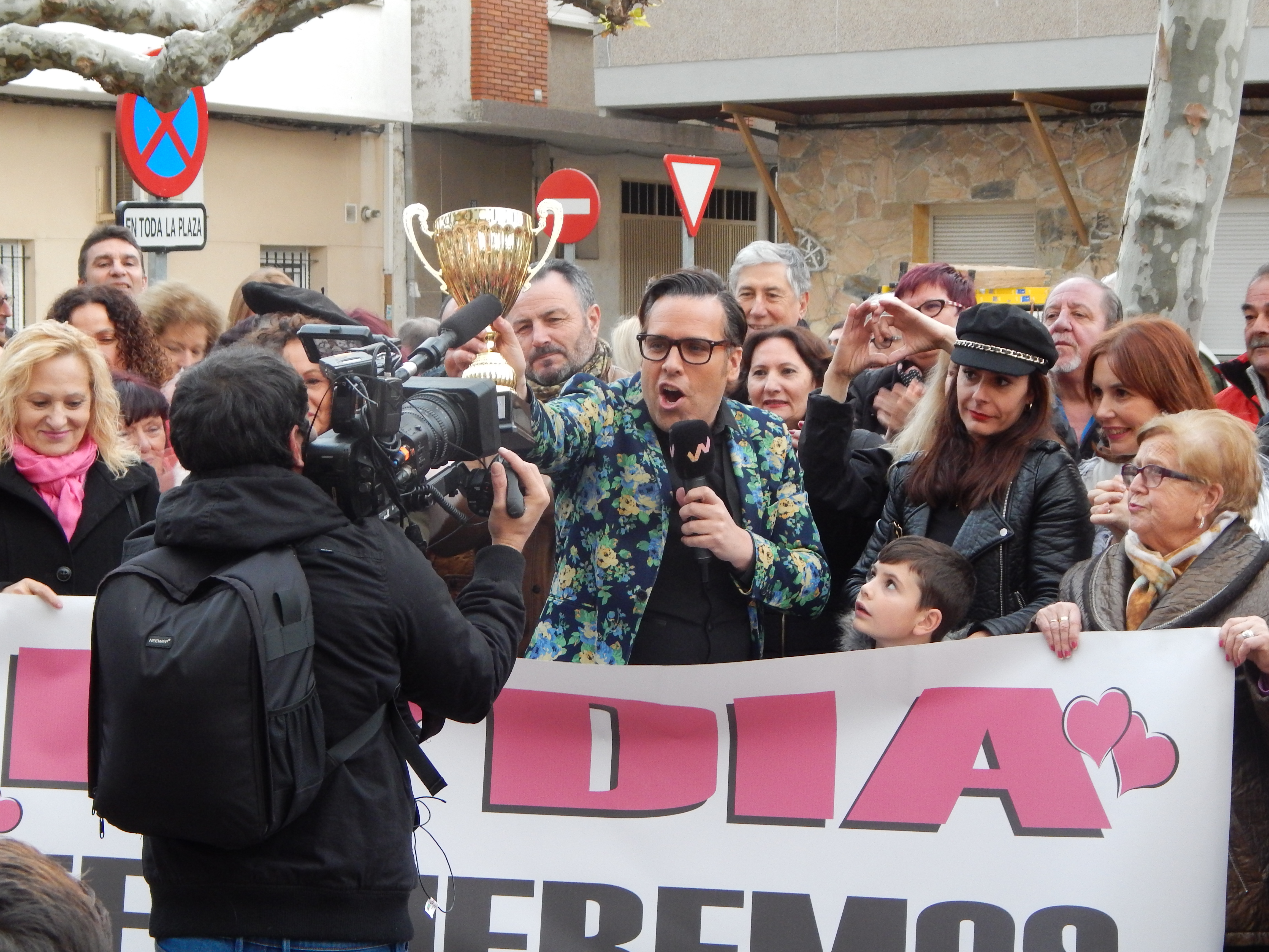 Por la tarde hubo una “quedada” en la plaza del Ayuntamiento donde el periodista y reportero organizó y coordinó a los allí presentes. Grabó declaraciones de familiares como su madre o su sobrino. No faltó el envío de La Copa, que se le entregó en plató, ni el confeti final.
