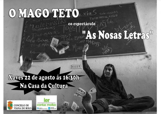 Mañana jueves 22 de agosto a las 16:30 horas la Casa de la Cultura de Viana do Bolo acogerá la actuación del Mago Teto, que acerca su espectáculo «As nosas letras».