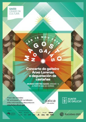 La Xunta de Galicia invita en la Cidade da Cultura de Galicia a festejar el sábado 16 de noviembre su fiesta por excelencia del otoño: el Magosto en el Gaiás. Para celebrar esta cita cultural y gastronómica de carácter familiar y con arraigo en la cultura popular gallega se contará con las imprescindibles castañas -asadas o como ingrediente principal en pinchos- y con los ritmos tradicionales y de fusión de uno de nuestros gaiteros más internacionales, Anxo Lorenzo.