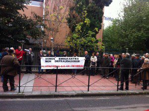 Manifestación del colectivo de emigrantes retornados frente al edificio de Hacienda de O Barco