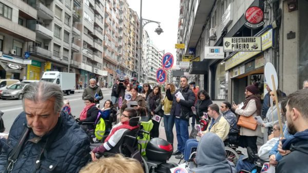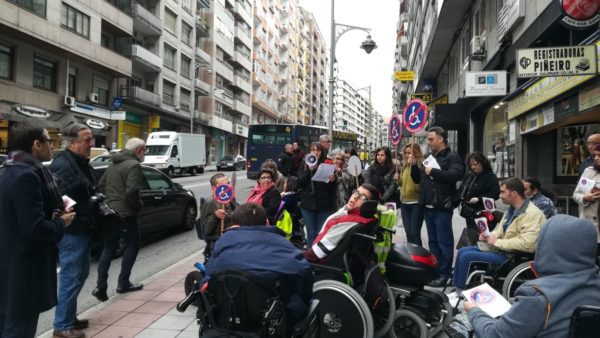 Por eso estamos aquí, en Santiago de Compostela, Ponteceso, Noia, Pobra do Caramiñal, A Coruña, O Carballiño, Ourense, Lugo, Monforte, Pontevedra, Mos, y también en Almería, Granada, Málaga, Sevilla, Zaragoza, Lugones en Asturias, Santander, Ciudad Real, León, Palencia, Soria, Barcelona, Ceuta, Alicante, Castellón, Picassent y Xátiva, Valencia, Bilbao y Cáceres, además de Logroño, Madrid, Murcia y Pamplona. Estamos en lugares inaccesibles para que sea más evidente a lo que nos estamos refiriendo. Barreras como estas son a las que nos enfrentamos cada día y esto tiene que acabar ya!