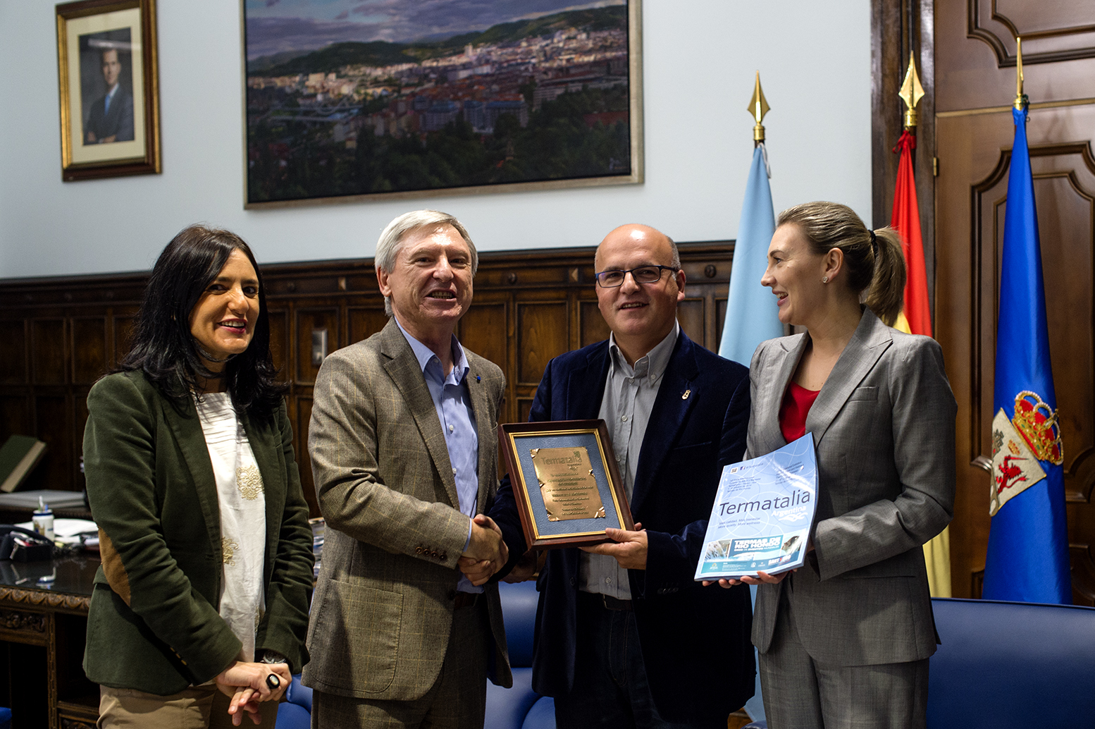 Manuel Baltar recibe de Alejandro Rubín a placa conmemorativa de Termatalia 2014