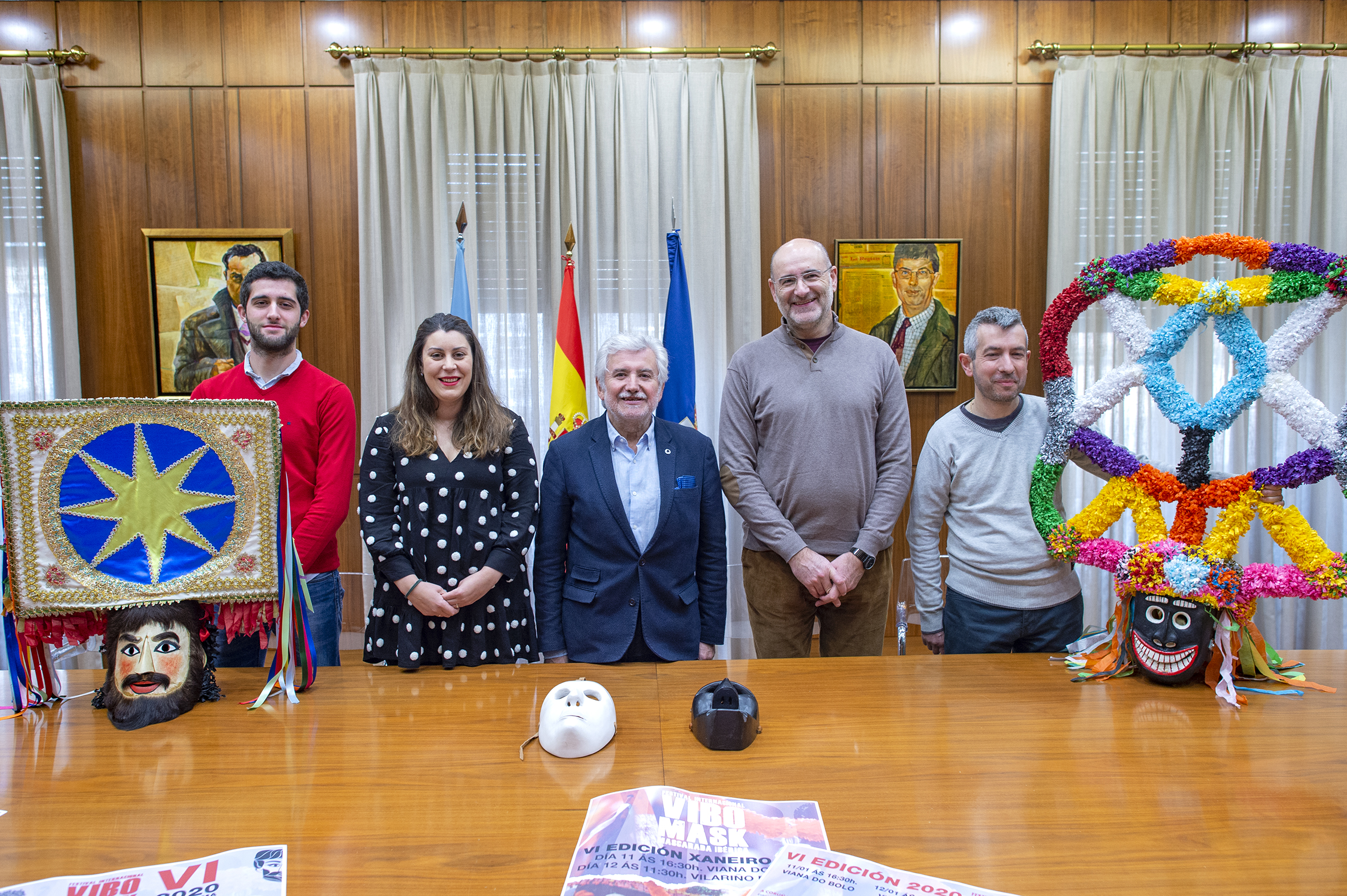 La VI edición del Festival Internacional Mascarada Ibérica “ViBoMask” reunirá a 45 grupos procedentes de las cuatro provincias gallegas y de diferentes lugares de la geografía española como Cantabria, Castilla y León, Castilla La Mancha y el País Vasco, a los que sumarán grupos de Portugal e Italia. La presentación de este evento cultural tuvo lugar hoy en el Pazo Provincial, acto en el que participó el vicepresidente de la Diputación de Ourense, Rosendo Fernández; el alcalde de Viana do Bolo, Secundino Fernández; la alcaldesa de Vilariño de Conso, Melisa Macía; y los miembros de la asociación “Robreda” de Viana do Bolo, Jorge Domínguez y Pedro Basalo.