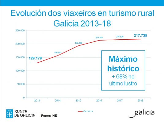 Los datos difundidos hoy por el Instituto Nacional de Estadística (INE) permiten constatar la notable evolución que esta tipología turística está experimentando desde 2013, dado que hace solo cinco años la cifra total de viajeros en las casas de turismo rural era de 129.179.