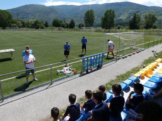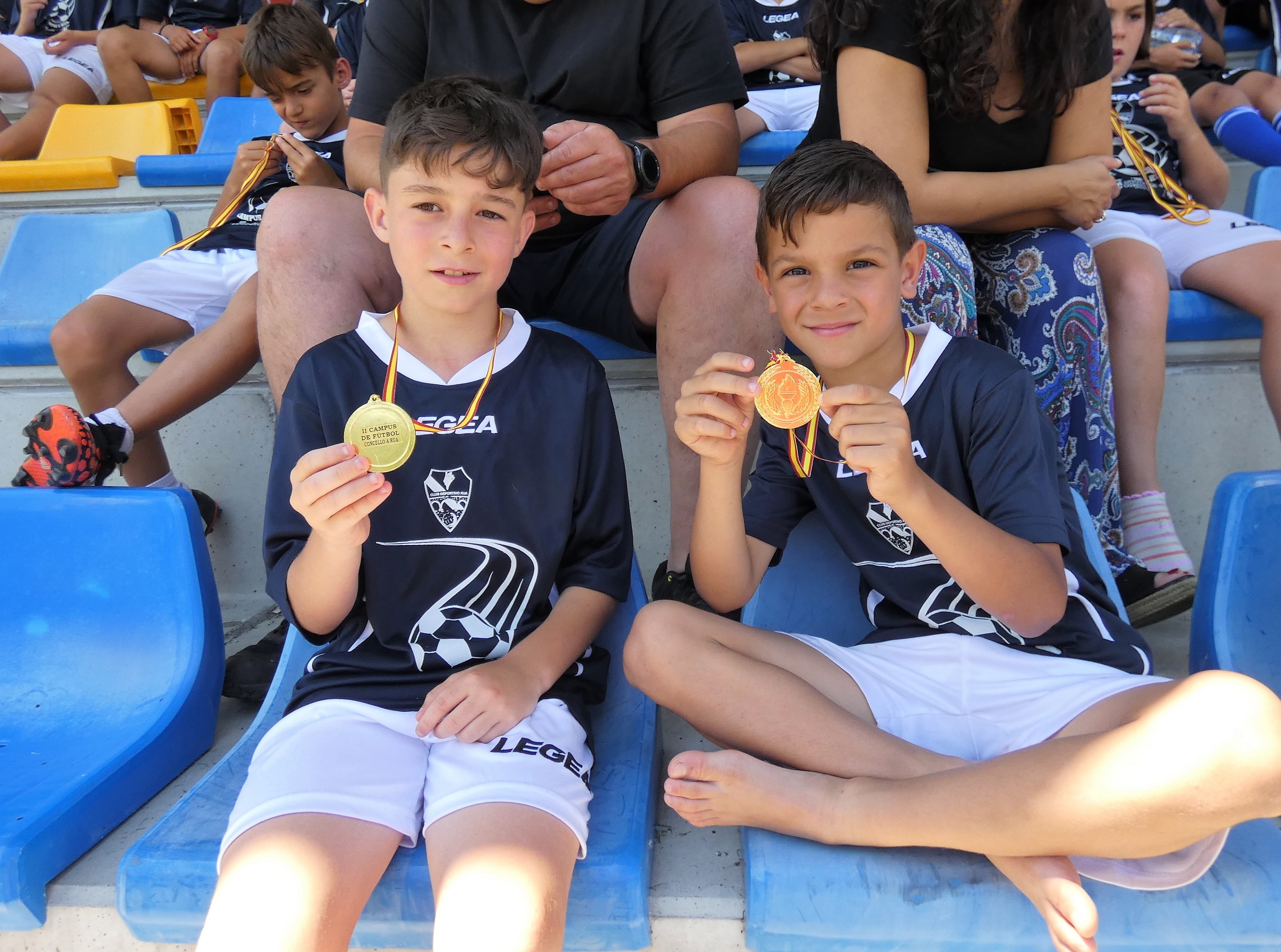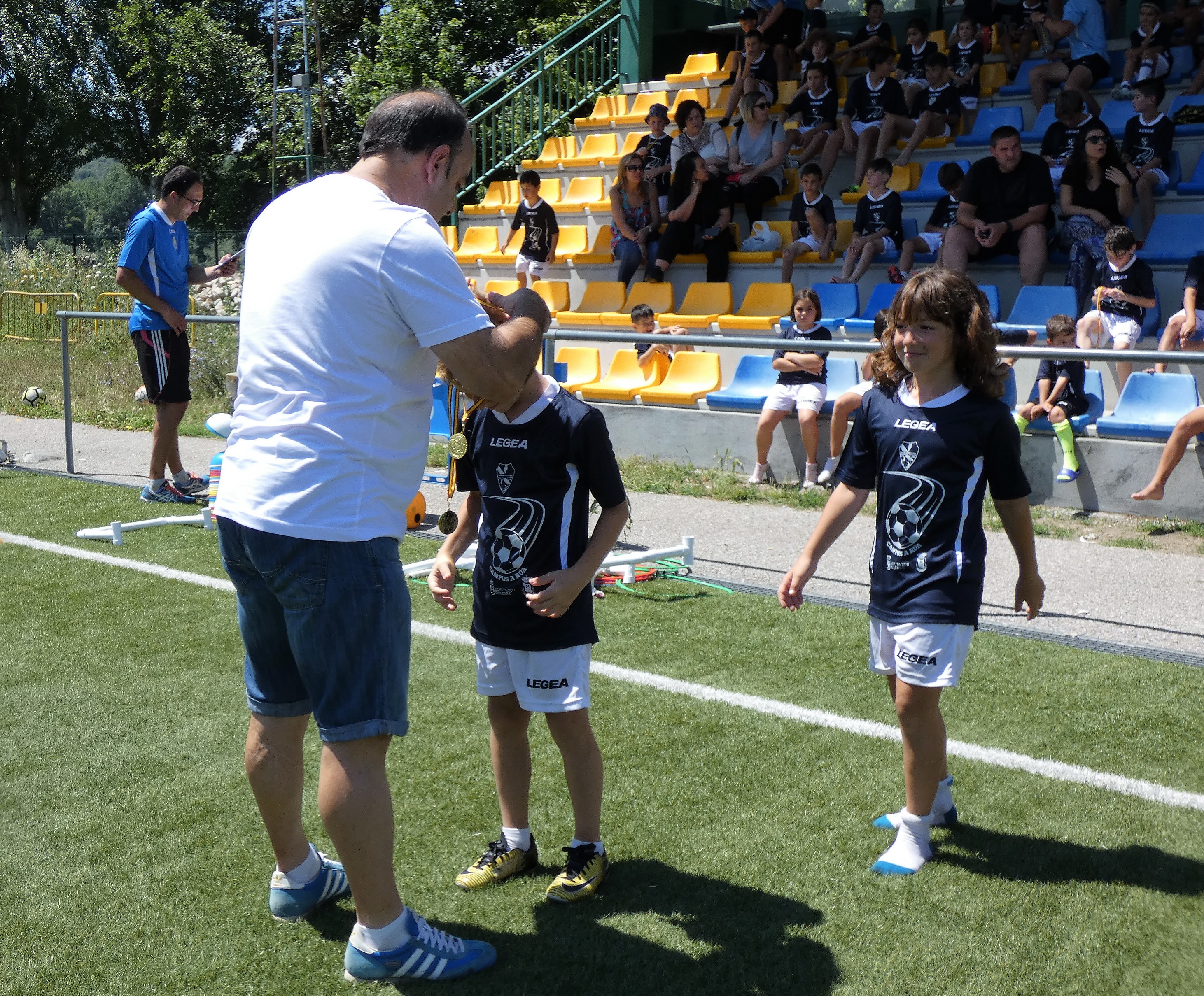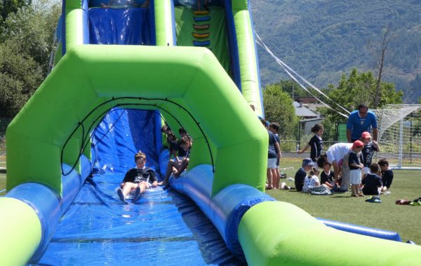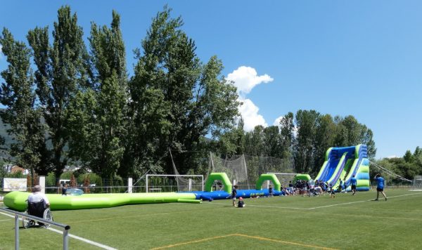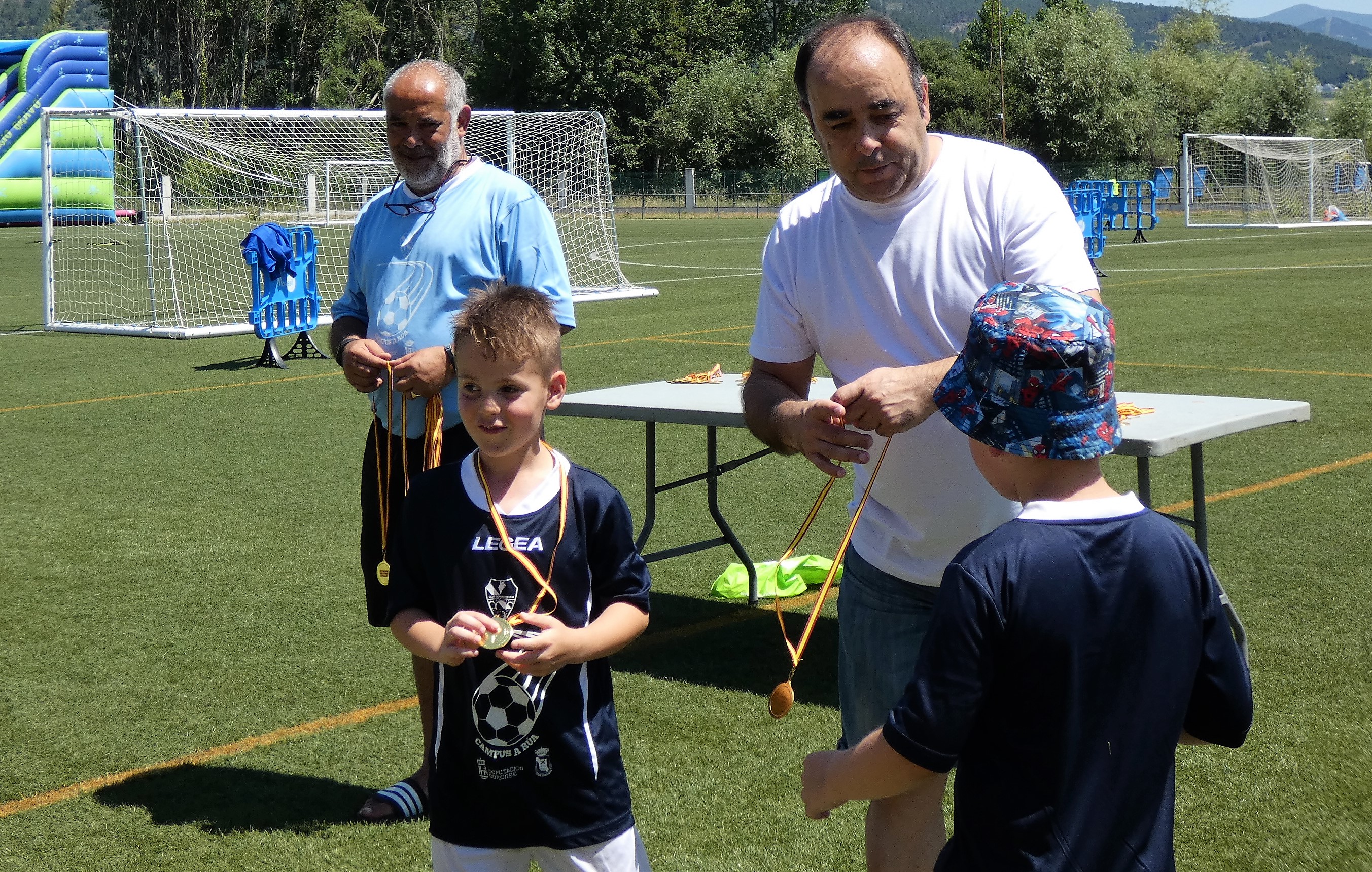 Los 85 niños y niñas que participaron en el II Campus de Fútbol de A Rúa de Valdeorras vivieron la clausura de forma muy especial. Así, en el Campo Novo Aguillón fue instalado un hinchable gigante de agua para lanzase en flotador. Además, todos y cada uno de los y las participantes recibieron una medalla de las manos del concejal de Deportes, Avelino Fernández Seco, y de uno de los monitores, Durán.