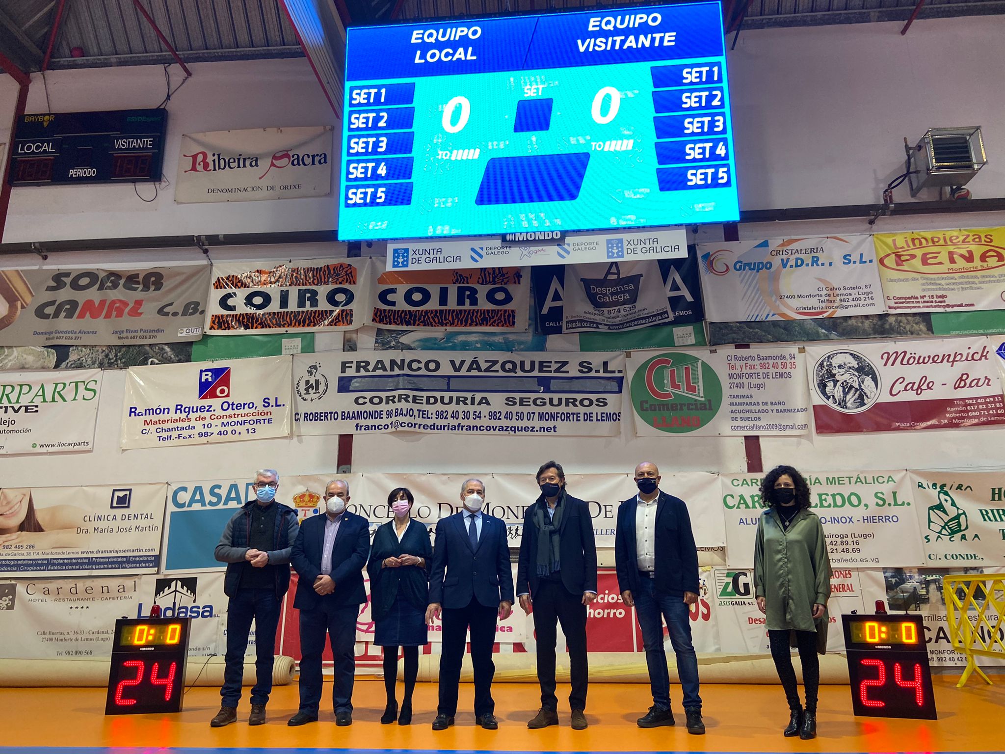 En el caso de Monforte, el secretario general, acompañado por el alcalde José Tomé, supervisó la instalación del vídeo marcador en el pabellón municipal de la Pinguela. En total, la adquisición, suministro e instalación de la pantalla consiguió un presupuesto de 27.480,43 euros, siendo acercado por la Xunta el 73% (20.000 euros) y el restante 27% por el ayuntamiento (7.480,43 euros).
