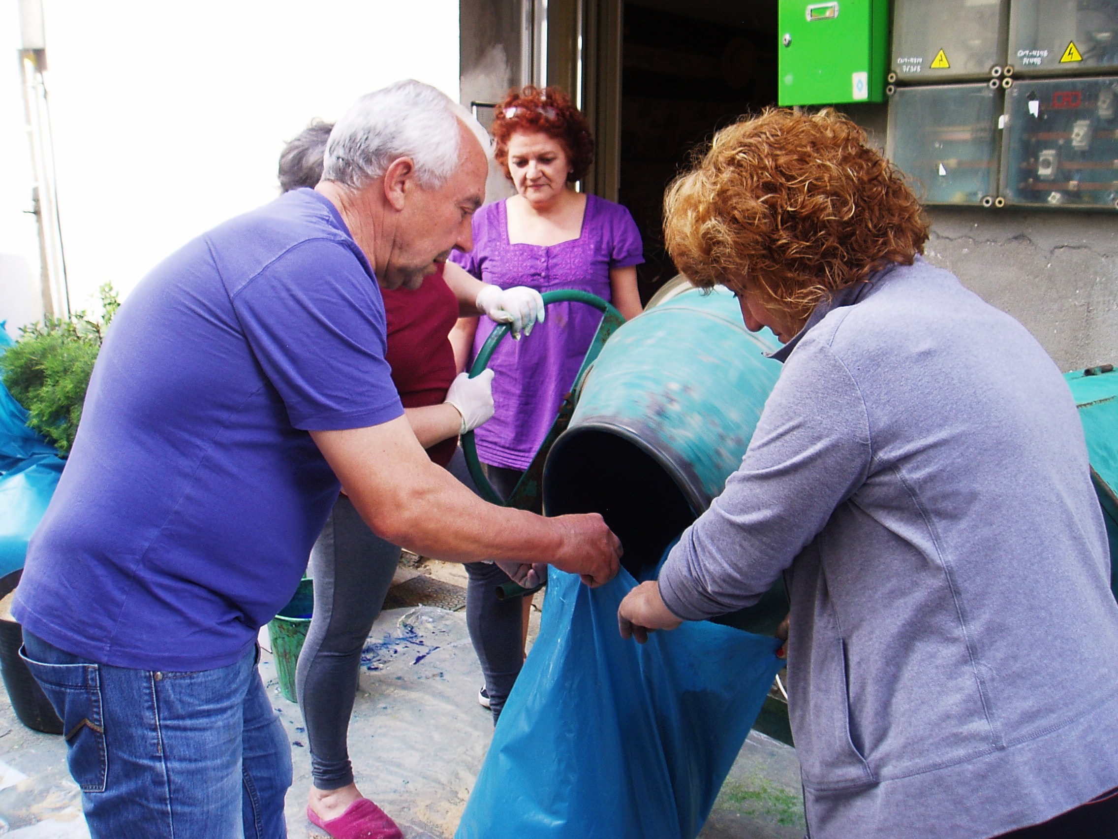 Mezclando el serrín con tinte azul en la hormigoneraPor Redacción CTP / 27 mayo, 2016 Compartir en FacebookCompartir en Twitter