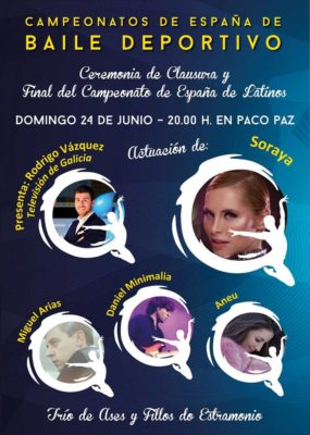 Este domingo día 24 de junio a las 20:00 horas en el Pazo de los Deportes Paco Paz será la clausura del Campeonato de España de Baile Deportivo y del I Congreso Internacional de Baile Social «Ourense, provincia Termal».