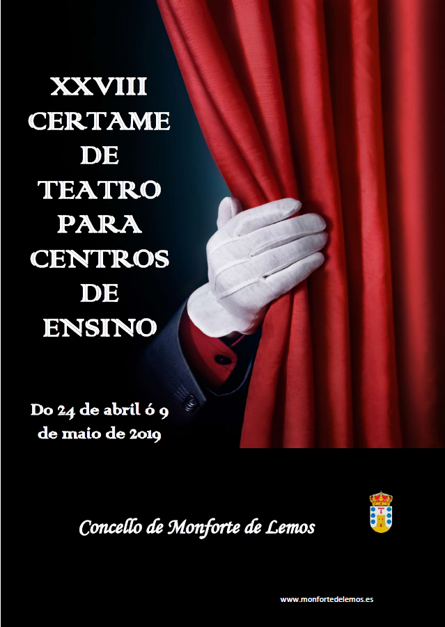 El Ayuntamiento de Monforte, a través de su concejalía de Cultura, viene de convocar el XXVIII Certamen Municipal de Teatro para centros de enseñanza de Monforte, que se realizará entre el 24 de abril y el 9 de mayo de 2019.