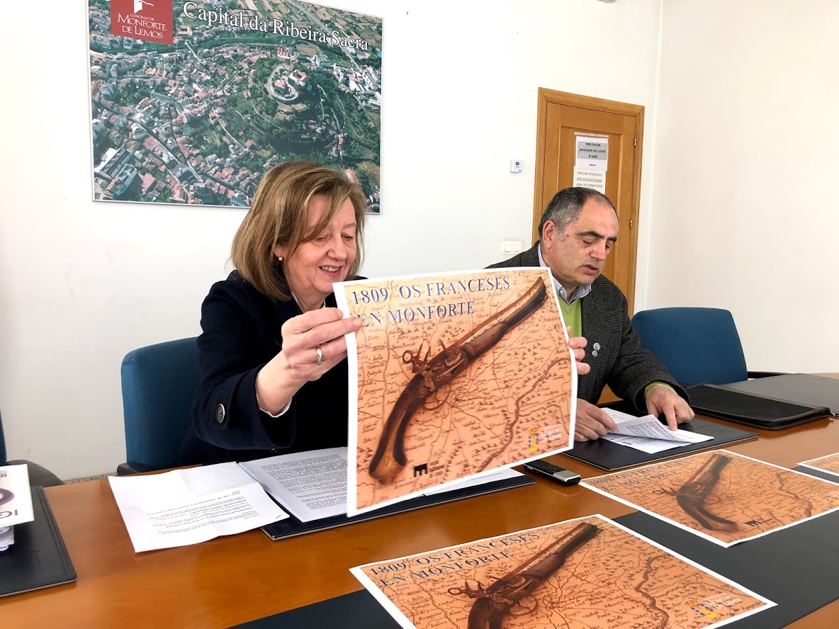 La Concejal de Cultura de Monforte, Marina Doutón, y el vicepresidente de la asociación Amigos Patrimonio de Lemos, Jorge Vila, ofrecieron una rueda de prensa para dar a conocer las diferentes actividades que se celebrarán bajo el título “1809: Los Franceses en Monforte”, jornadas que tienen por objetivo conmemorar los sitios de Monforte en su 210 aniversario.