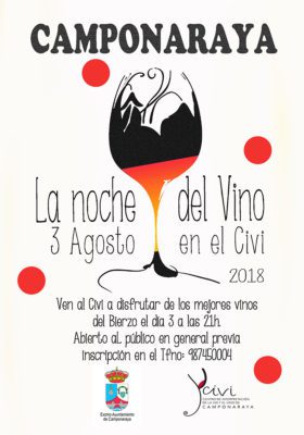 El Ayuntamiento de Camponaraya desarrolla hoy viernes, 3 de agosto, la Noche del Vino, en el Centro de Interpretación de la Vid y el Vino (CIVI). El éxito de esta iniciativa, completamente gratuita y para la que ha sido necesaria una previa inscripción de los participantes, se ratifica en que las plazas ya están agotadas desde hace días y aún cuando se ampliaron las plazas de 100 a 150 con respecto a la edición pasada.