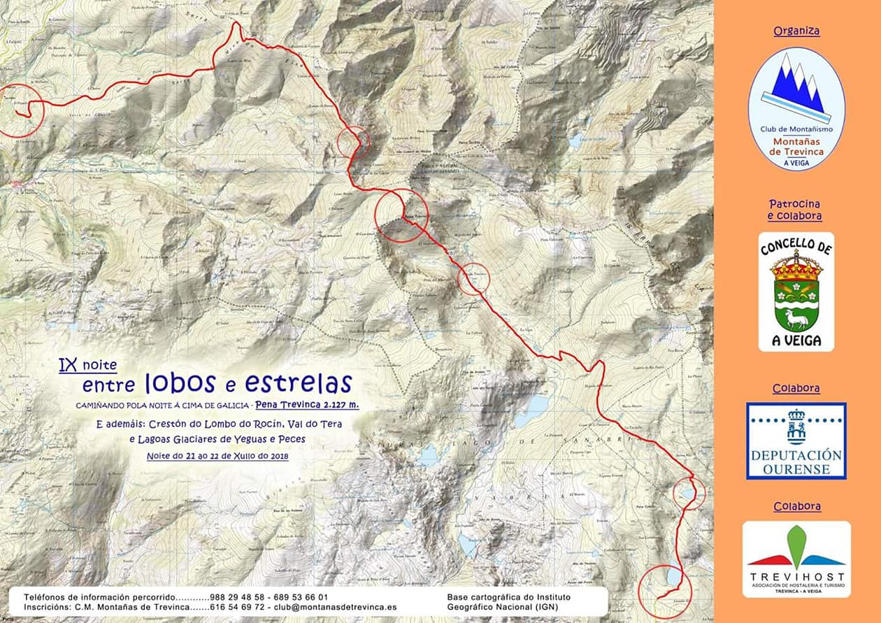 El Club de Montañismo Montañas de Trevinca de A Veiga ha organizado la “IX Noite entre lobos e estrelas”, del 21 al 22 de julio. Se trata de una caminata nocturna por la cima de Galicia, Pena Trevinca (2.127 metros de altitud) y parajes como el Crestón do Lombo do Rocín, Val do Terra y lagunas glaciares de Yeguas y Peces.