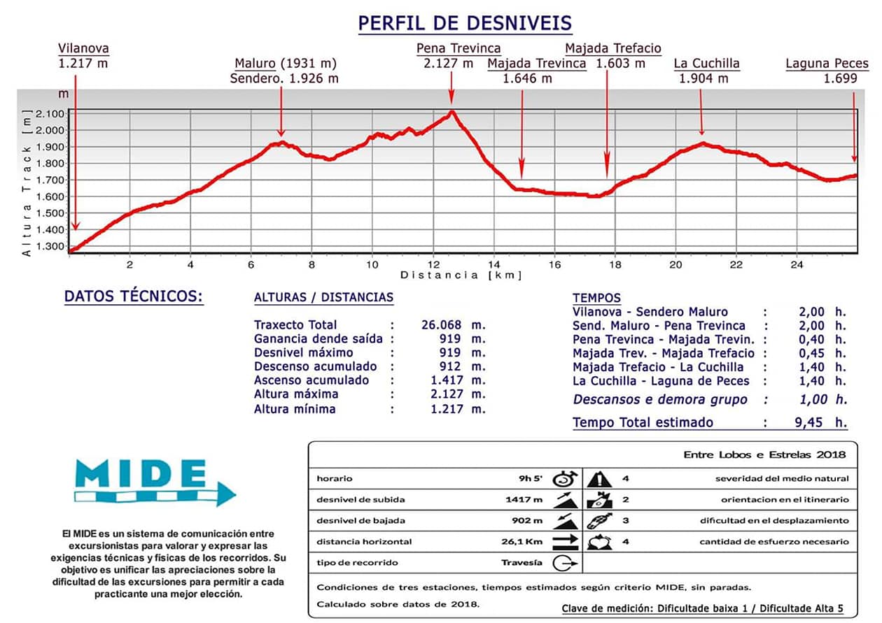 Los tramos a ejecutar abarcan 26 kilómetros y un tiempo de duración que se estima de 8 horas y 45 minutos. Son los siguientes: Vilanova-Sendero Maluro; Sendero Maluro-Pena Trevinca; Pena Trevinca-Majada de Trevinca; Majada de Trevinca-Majada Trefacio; Majada Trefacio-La Cuchilla; La Cuchilla-Laguna de Peces.