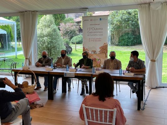 La directora de Turismo de Galicia, Nava Castro, acompañada de los presidentes del Clúster Turismo de Galicia, Cesáreo Pardal; de la Federación Gallega de Turismo Rural (Fegatur), Francisco Almuiña; y de la Asociación Gallega de Turismo Rural (Agatur), Juan Luis García, asistió a la presentación de la campaña Otoño Gastronómico en su ya XV edición, en la que participan 73 establecimientos de turismo rural gallegos y que se desarrollará entre los días 17 de septiembre y 19 de diciembre de 2021.