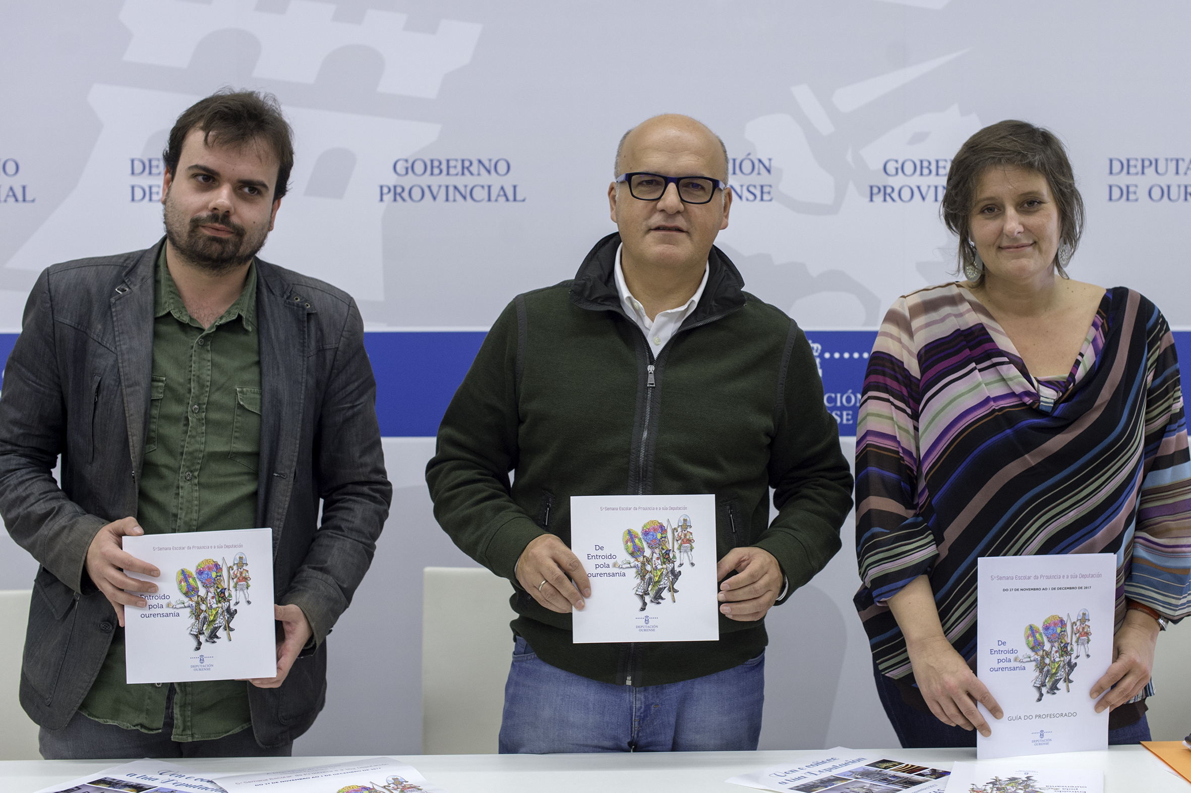 La 5ª Semana Escolar de la Provincia y su Diputación acercará este año los distintos aspectos de ‘O Entroido’ como patrimonio inmaterial a más de 8.700 alumnos y profesores de 66 centros educativos de la provincia que participan en esta iniciativa promovida y organizada por la Diputación de Ourense. La presentación tuvo lugar hoy en el Centro Cultural «Marcos Valcárcel», con la participación del presidente de la Diputación de Ourense, Manuel Baltar; la coordinadora de la actividad, Llerena Perozo; y el autor del manual, Alberto Ramos.