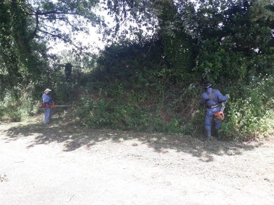 • Además de los trabajos con el tractor hay equipos limpiando maleza a mano parroquia por parroquia
