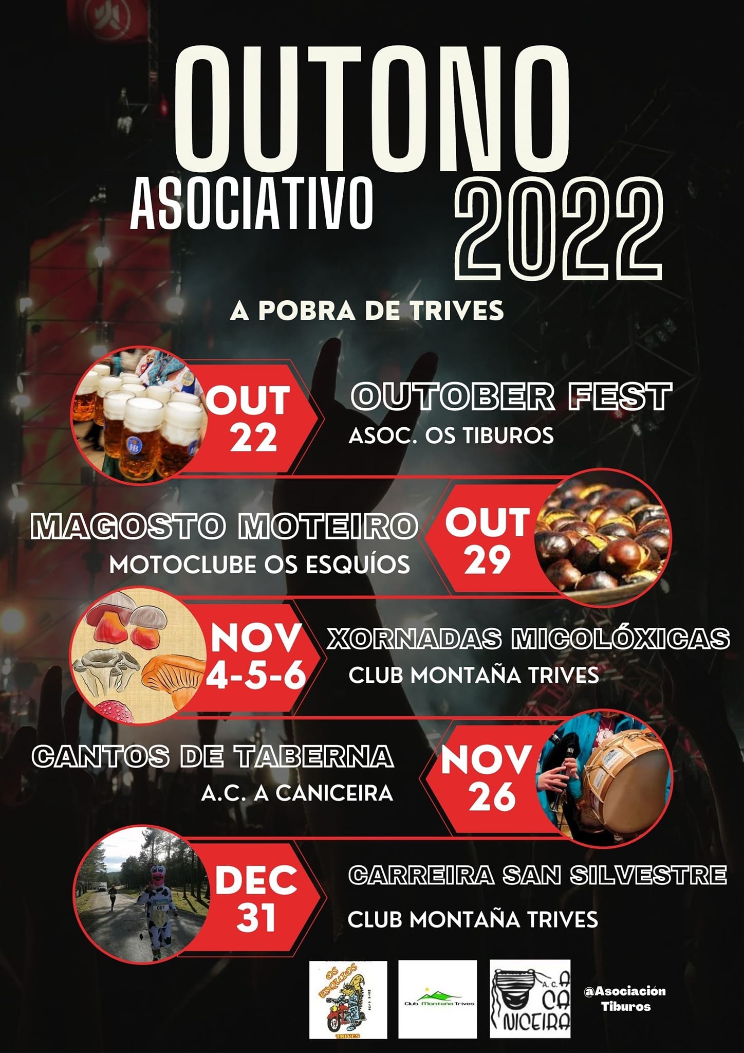 As asociacións da Pobra de Trives Os Esquios, A.C. A Caniceira, Club Montaña Trives e Asociación Tiburos presentaron días atrás un cartel conxunto no que reúnen as actividades que organizan para este outono, todas moi atractivas e variadas.