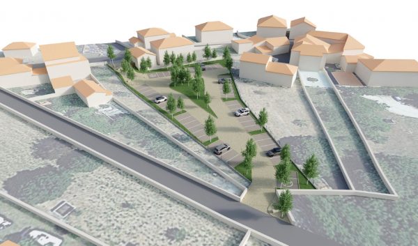 - La actuación urbanística, que se enmarca en los objetivos del plan Hurbe, incluirá la creación de un área de aparcamiento y zona verdes con mobiliario y servicios urbanos