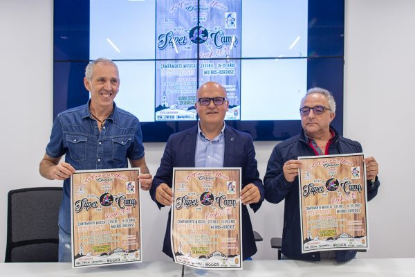 El presidente de la Diputación de Ourense, Manuel Baltar, presentó hoy en el Pazo Provincial junto al alcalde de Muíños, Plácido Álvarez, y el músico Fernando Calvo, guitarrista de Los Suaves, el programa del «Super Camp Rock» 2019, una iniciativa que apoyan la Diputación de Ourense y el Ayuntamiento de Muíños y que tiene como objetivo acercar a los alumnos conocimiento musical, combinando formación, ocio, aventura y naturaleza. El campamento, que se desarrollará en el albergue turístico de O Corgo, en Muíños, del 19 a 25 de agosto , está dirigido a jóvenes de entre 15 y 25 años que tengan un año de experiencia en los instrumentos: guitarra, batería o percusión, piano o teclado y bajo eléctrico o acústico, y también cante moderno o clásico (instrumento para el cual no se requiere experiencia previa). Como artistas invitados estarán Alberto Cereijo y Charly Domínguez ( Los Suaves), Manuel Seoane (Mago de Oz) y Jorge Escobedo y Antonio Bernardini (Sóber).