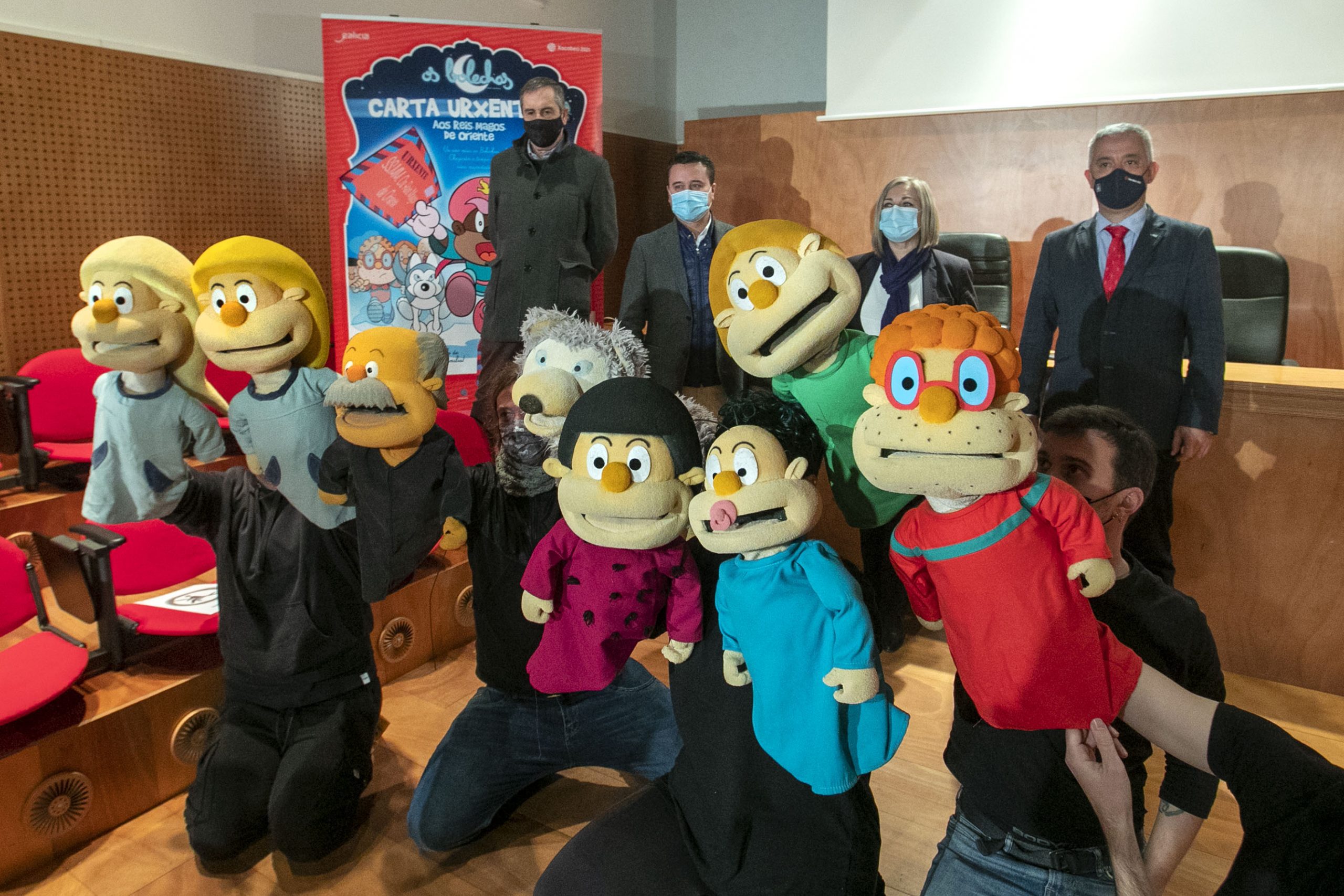 Los muñecos animados más famosos de Galicia vuelven a los ayuntamientos de la Red de Dinamización Lingüística (RDL) por la Navidad, de la mano de la Xunta de Galicia, Bolanda Ediciones, Gadis y la Televisión de Galicia (TVG). Los representantes institucionales de estas entidades presentaron hoy en el Pazo de San Roque la gira de la nueva propuesta, que llegará de 21 de diciembre a 7 de enero a los ayuntamientos de Guntín, Abadín, Trazo, Redondela, Bergondo, Salceda de Caselas, Padrón y Viana do Bolo.