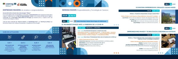 La semana maker incluye también la celebración de dos webinars. El primero de ellos Ecosistema emprendedor: Zaragoza ciudad Maker será el jueves, 16 de julio, y al día siguiente, se celebra el webinar Emprendimiento Maker: oportunidades de creación de empresas en base a tecnologías emergentes. Ambos comienzan a las 11 horas. Las personas interesadas en asistir a la presentación de Emprende Makers y a los webinars deben inscribirse previamente a través del enlace.