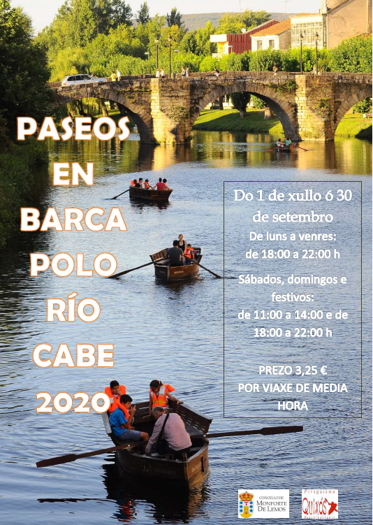 El Alcalde de Monforte, José Tomé Roca, ven de comunicar que desde las 18:00 horas de mañana miércoles 1 de julio, monfortinos y visitantes ya pueden disfrutar de los tradicionales paseos en barca por el río Cabe.