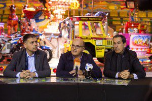 Presentación de Pazolandia. Asisten Manuel Baltar (Presidente Deputación), Bernardino González (Asesor de Deportes) e Angel Cid (Director do Pazo dos Deportes «Paco Paz»).