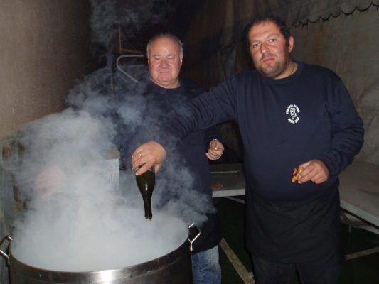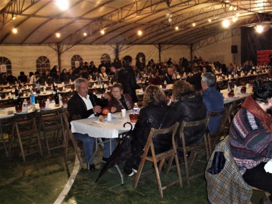 Miguel Bautista, que mientras se afanaba en los preparativos de la cita gastronómica comentaba, medio en broma medio en serio, que esta era su última fiesta a la cabeza de la misma, por aquello de que está próxima su “jubilación”, detalló que fueron cocidos 800 chorizos para los comensales y asados, aproximadamente,  230 kilos de carne, además de servir un buen consomé. Él mismo fue uno de los que se encargó del recibimiento y  atención de los 500 comensales que se sentaron a la mesa.