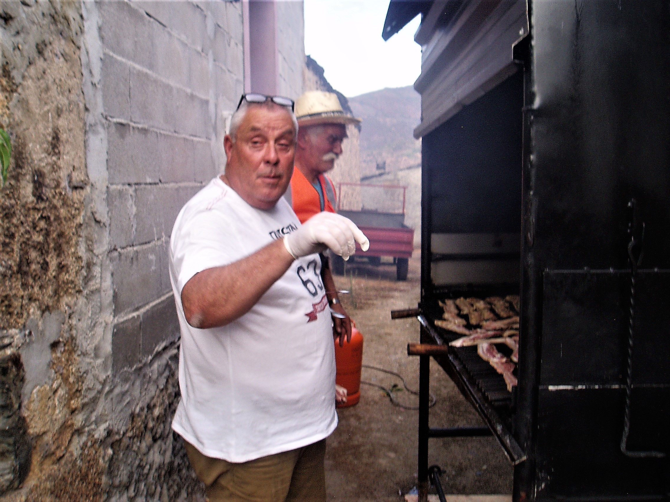 Las charangas animaron la celebración en todas y cada de las antiguas bodegas y hasta el propio alcalde de la localidad, Miguel Bautista, se animó a freír panceta para los asistentes.