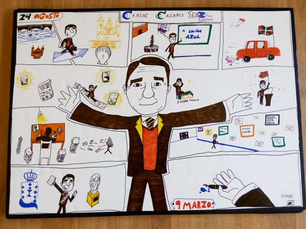 La Federación de Asociaciones de Mujeres “Anaral” de Trives, en colaboración con los centros educativos de la zona y con el apoyo de la Fundación Carlos Casares, realizó un “photocall” de Carlos Casares formado por murales que cada centro escolar y la Federación elaboraron.