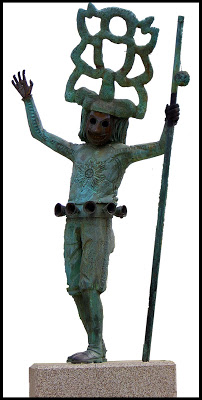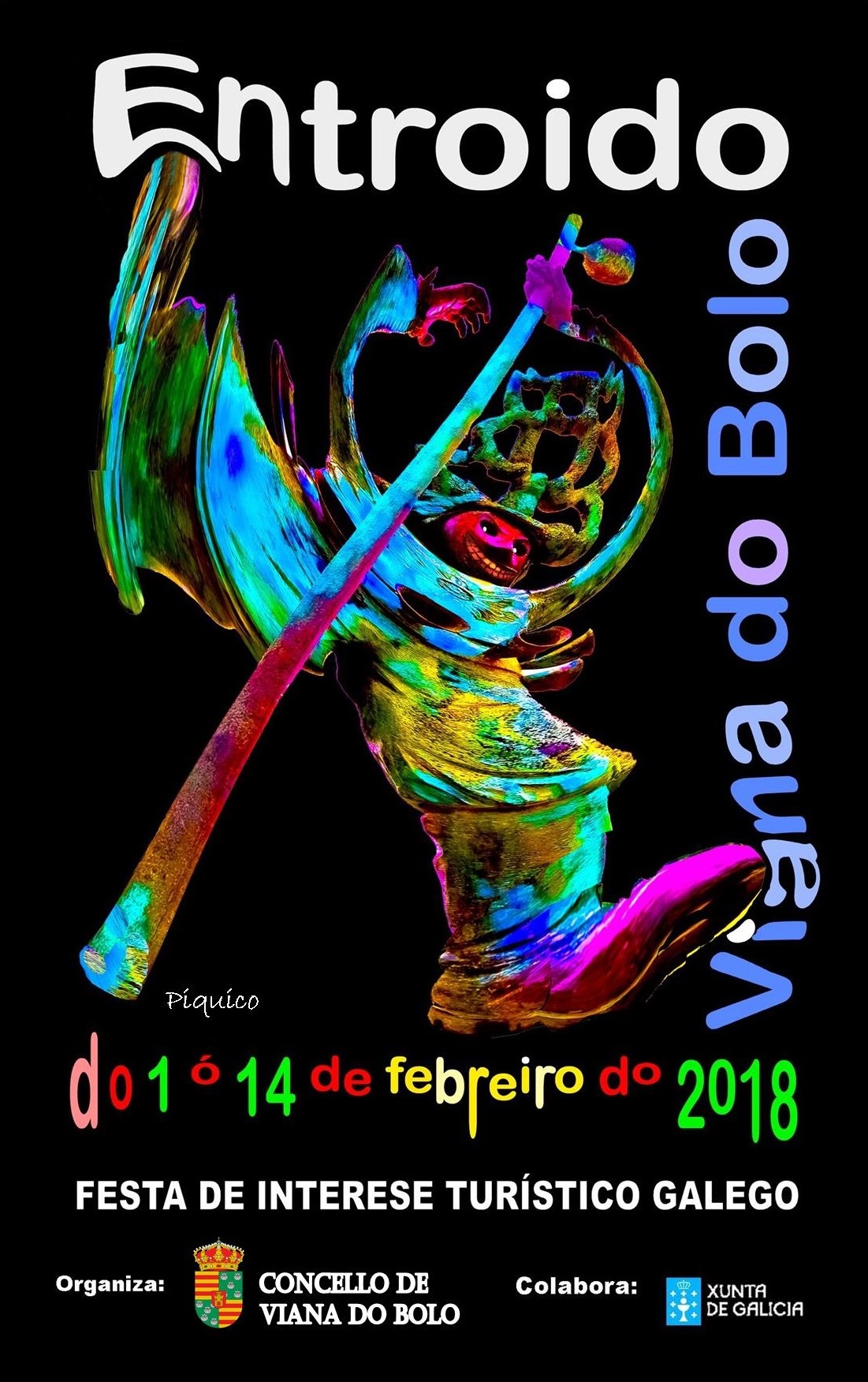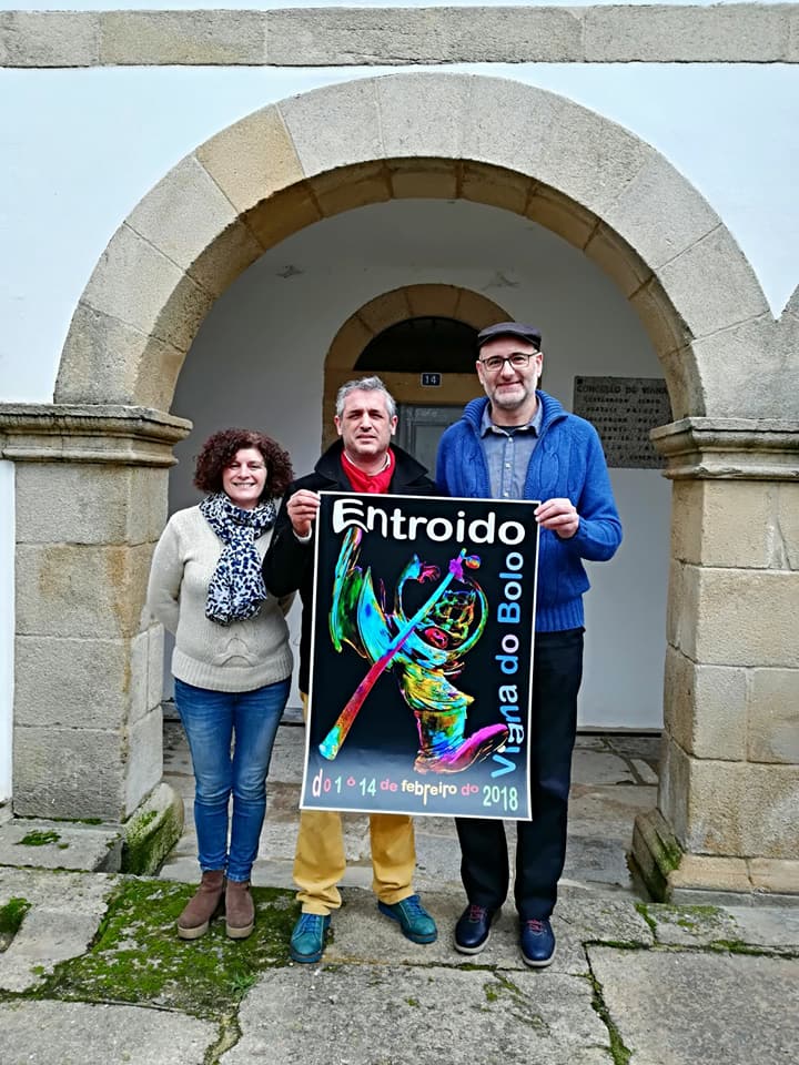 Está representada la figura del Boteiro, similar a la escultura de bronce que está en la plaza de Viana de la cual también soy autor. Tomé la imagen para hacer el cartel empleando un colorido llamativo, propio del Entroido.