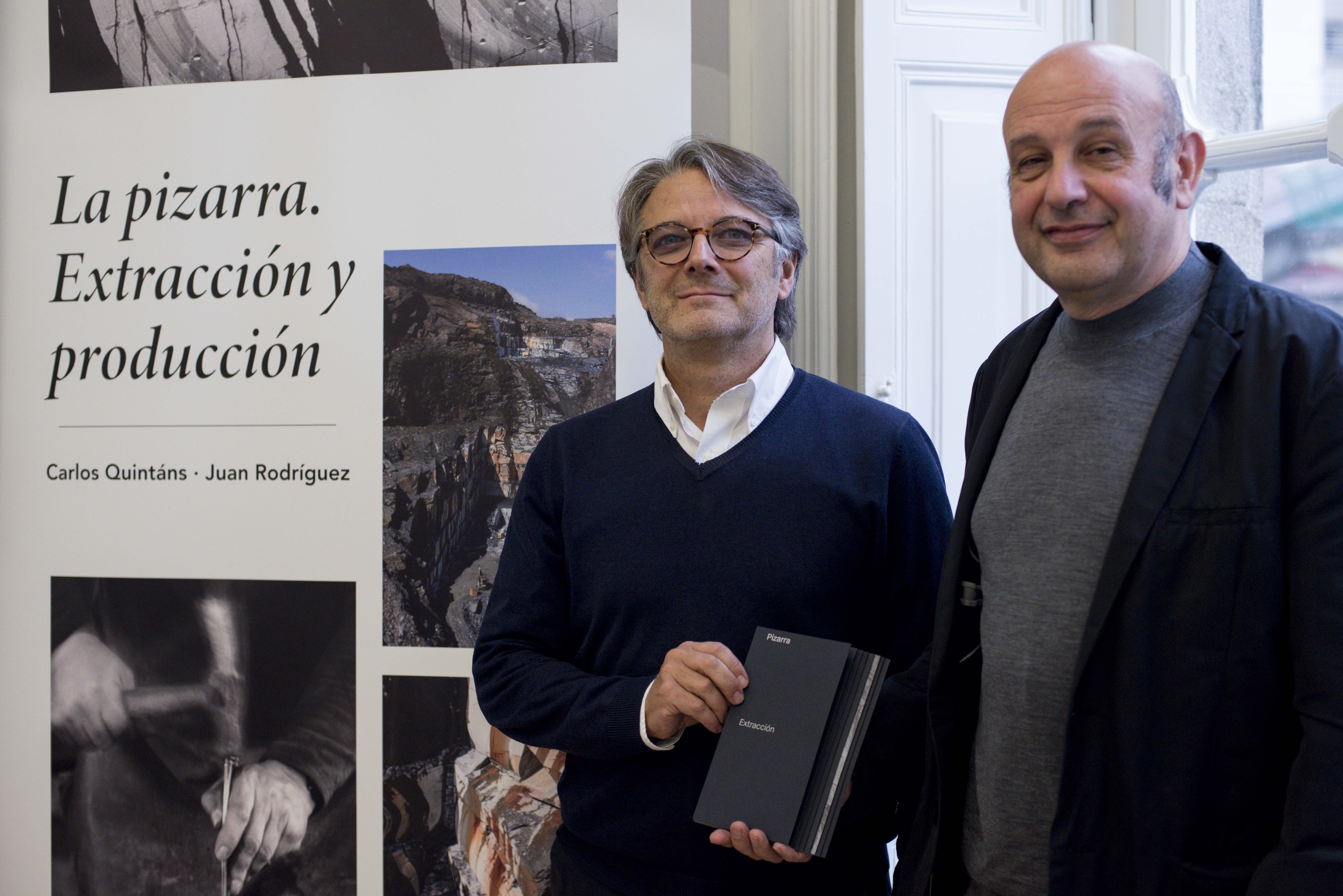 El prestigioso arquitecto coruñés Carlos Quintáns, que es el autor de los textos y el responsable de la línea editorial, presentó esta mañana a los asistentes la obra explicando que “con la obra Pizarra. Extracción queríamos mostrar la capacidad plástica que tiene esta piedra ornamental, así como ofrecer una visión de conjunto de las canteras o de fragmentos de algunas de sus partes. Para ello, el conocido fotógrafo Juan Rodríguez visitó las instalaciones de varias empresas pizarreras para plasmar en imágenes la profunda belleza visual que ofrece esta piedra ornamental”. Carlos Quintáns y Juan Rodríguez también quisieron destacar que “durante nuestro trabajo de estudio hemos querido analizar los primeros procesos de elaboración desde un planteamiento eminentemente plástico en el que la belleza de las imágenes es determinante en el interés del documento gráfico.