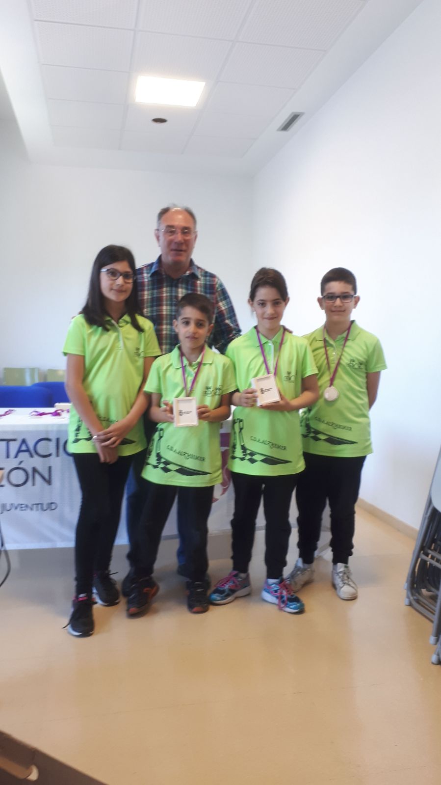 En la categoría Benjamín se proclamó vencedor por segundo año consecutivo el equipo perteneciente al CEIP Valentín García Yebra, compuesto por los hermanos Muñoz; Iván, Miguel, Noa y Ada. Estos pequeños ajedrecistas no dieron opciones a los equipos rivales consiguiendo además los cuatro primeros puestos en la clasificación individual.