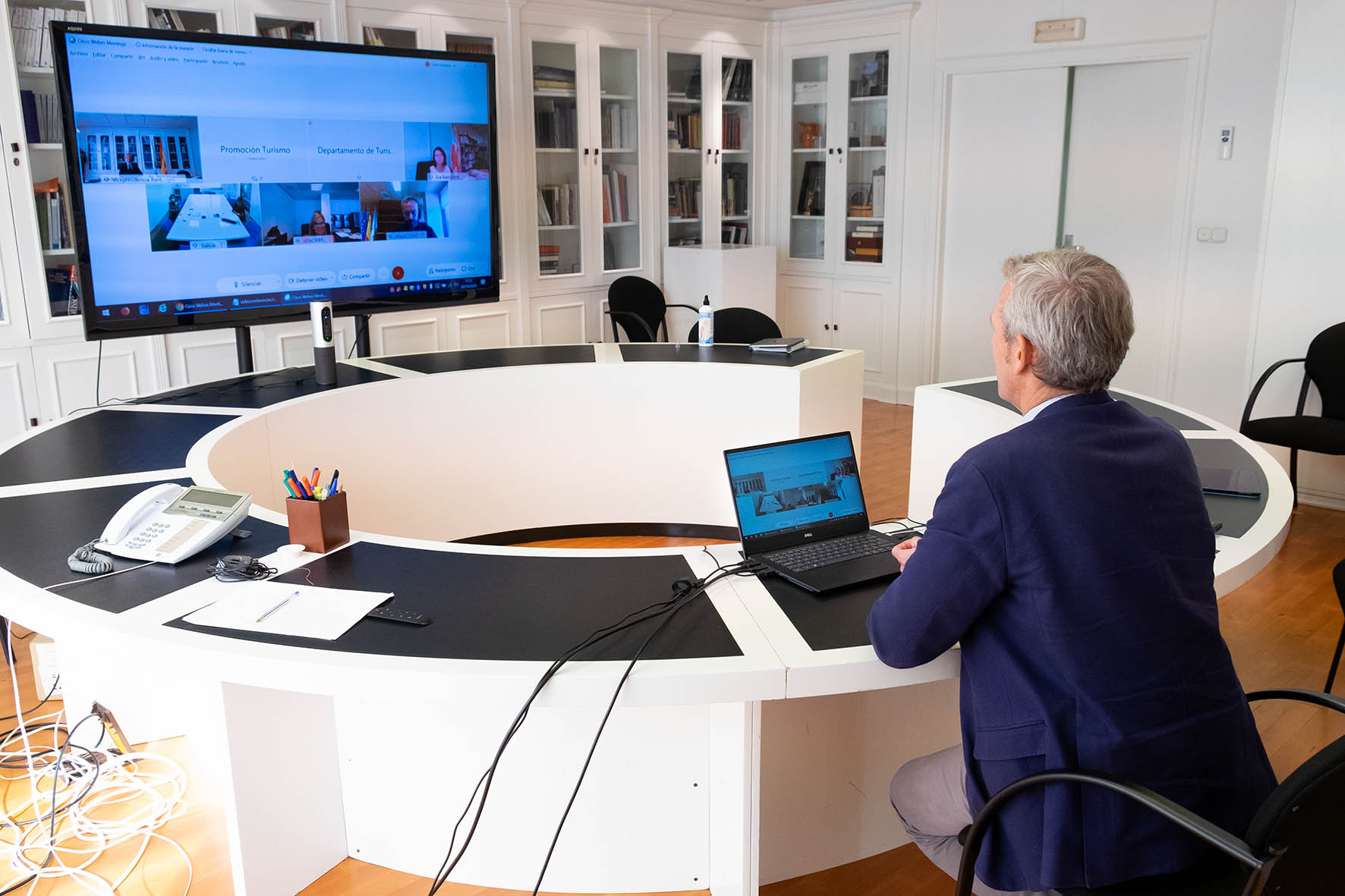 Alfonso Rueda, acompañado por la directora de Turismo de Galicia, Nava Castro, participó por videoconferencia en la reunión de responsables de la marca turística España Verde, en el que están integrados los gobiernos de Asturias, Cantabria y País Vasco, que junto con Galicia, integran la marca España Verde, y donde está también Turespaña. La premisa de la reunión es seguir trabajando en proyectos conjuntos aprovechando el modelo turístico común entre estas regiones con la meta de reactivar el turismo del norte peninsular.