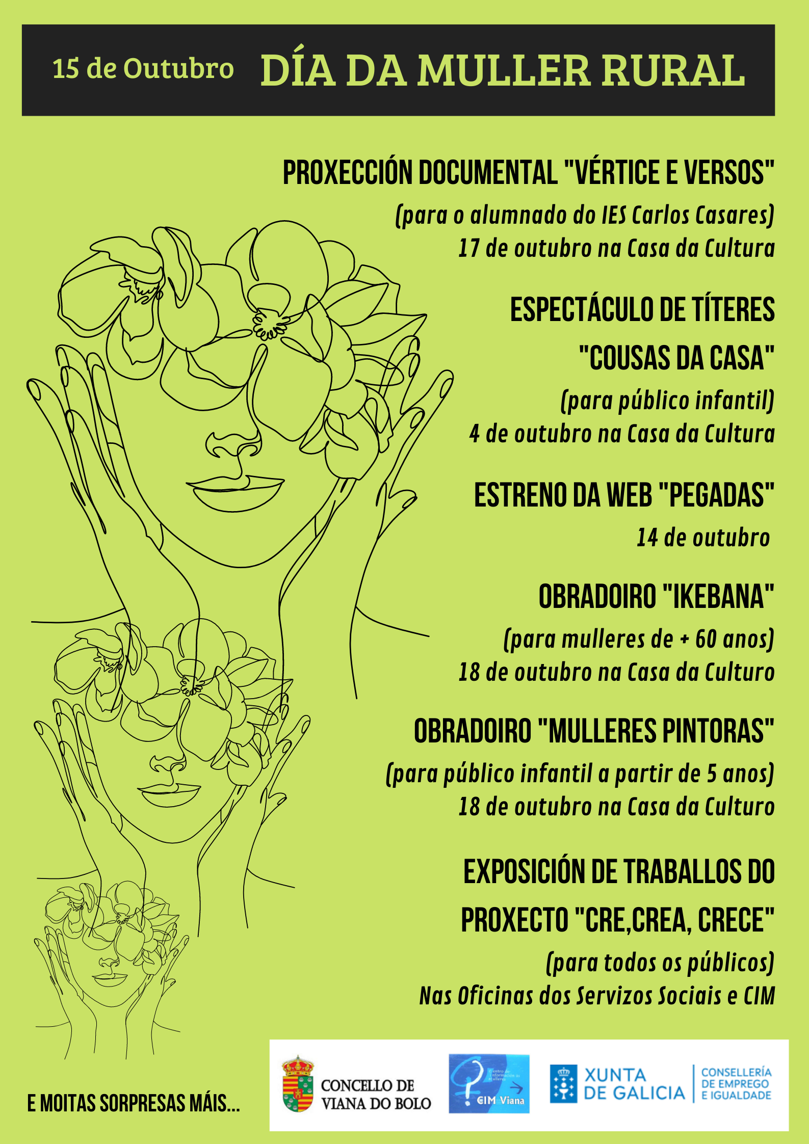 Con motivo da celebración do Día da Muller Rural o vindeiro 15 de outubro, a Concellería de Servizos Sociais e Igualdade do Concello de Viana do Bolo organiza, a través do Centro de Información á Muller (CIM), unha serie actividades e actos co obxectivos de reivindicar e dar recoñecemento ao papel das mulleres vianesas.