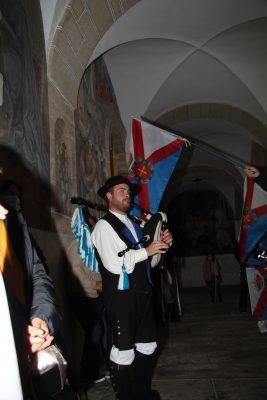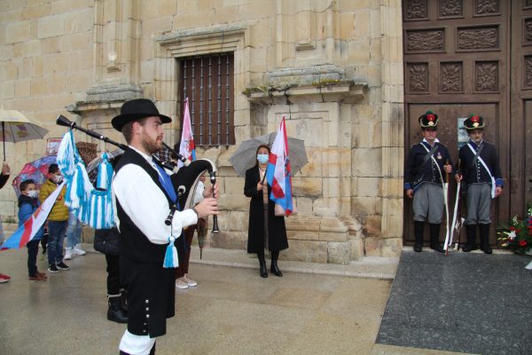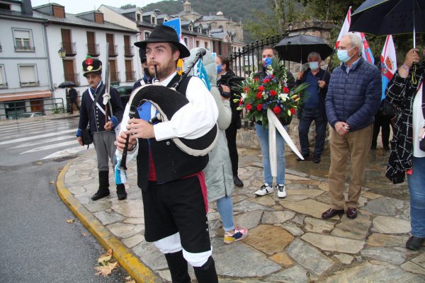 Acompañados del sonido de la gaita, que interpretó la tradicional Danza de Gigantes y Cabezudos, canción de honda raigambre, simbolismo y aprecio popular, bajo banderas bercianas y acompañados por una representación de los Tiradores de El Bierzo vestidos de época, se realizó un recorrido desde el Jardín de la Alameda hasta la sede de la Diputación de 1821, donde se realizó una ofrenda floral ante militantes, cargos públicos y simpatizantes. La lluvia no deslució, sino como se puso de manifiesto, es la lluvia, el agua, la que en cuenca del Sil da vida a nuestra región y su presencia nunca es motivo de pesadumbre, sino, al contrario, de alegría y buenos presagios.