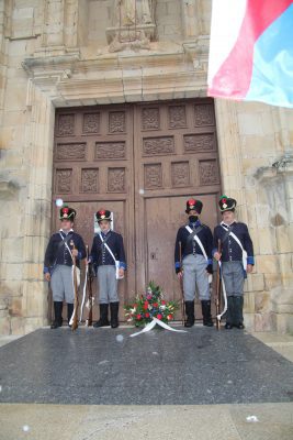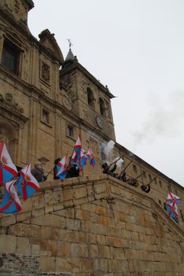 Durante el acto las salvas realizadas con armas de la época portadas y disparadas por los Tiradores de El Bierzo con el uniforme del ejército español de esa época, pusieron un importante colorido al acto, finalizando con la interpretación del “A Ponferrada me voy” simbolizando tras la interpretación de la villafranquina Danza de Gigantes y Cabezudos, el hermanamiento entre Villafranca del Bierzo y Ponferrada, las dos ciudades que en el siglo XIX compitieron por la capitalidad provincial y hoy, felizmente, son hermanas.
