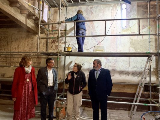 La Consellería de Cultura y Turismo está ejecutando los trabajos de restauración de las pinturas murales de la nave principal de la iglesia de San Vicente de Pinol, en Sober, con un presupuesto de 109.000 euros.