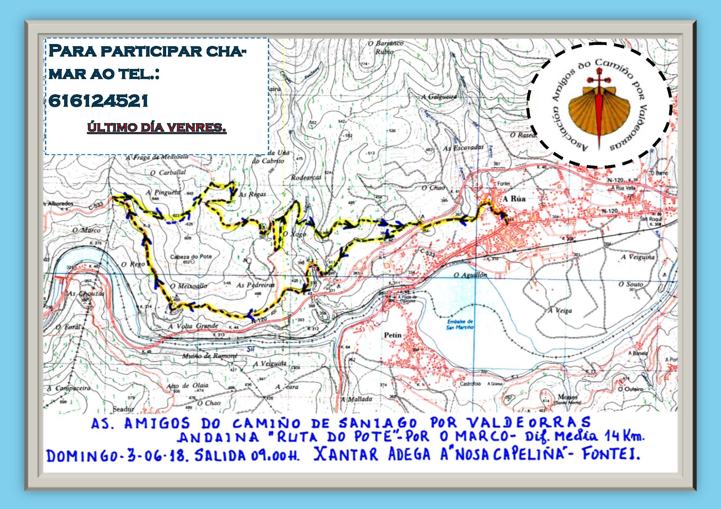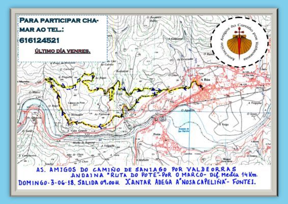 La Asociación de Amigos del Camino de Santiago por Valdeorras, que preside Asunción Arias, ha organizado una nueva actividad para este fin de semana, concretamente el domingo. Se trata de una ruta de senderismo, la Ruta do Pote, que consta de 14 kilómetros por distintos rincones de la geografía del municipio de A Rúa.