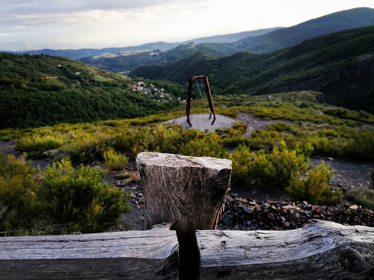 El columpio se diseña mediante la utilización mínima del material. El acabado se asemeja a las estructuras metálicas existentes en la zona. Como reminiscencia y homenaje al legado minero e industrial de la Cuenca del Sil y de El Bierzo.