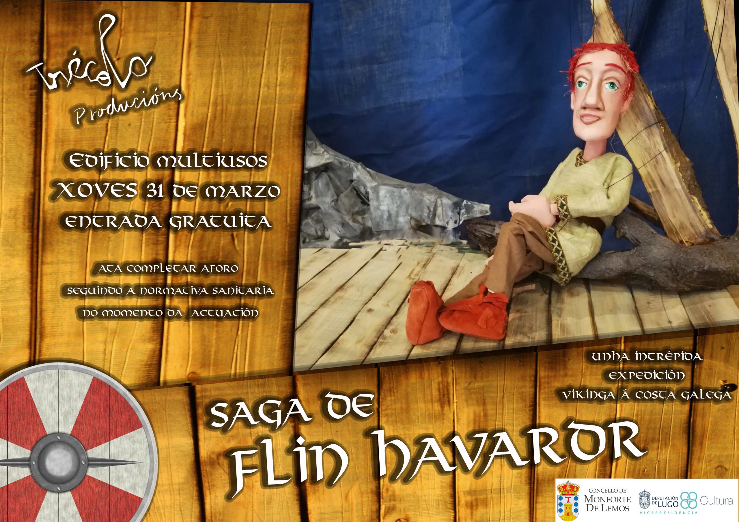 Trátase da obra Saga de Flin Havardr, da compañía Trécola Monicreques, unha obra orixinal desta compañía, representada por marionetas de fíos e música en directo da mán de Pablo Pintor e no que participan Isa G. Coldeira, Ero Vázquez Cabrera e Pablo Pintor.