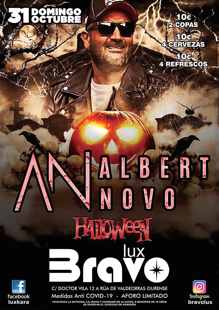 Y ya para el domingo 31, en la noche de difuntos, otro crack, el gran Albert Novo. DJ productor español residente en Madrid pero de origen castellano y con una carrera larga en su vida musical tras actuar en toda la geografía española.