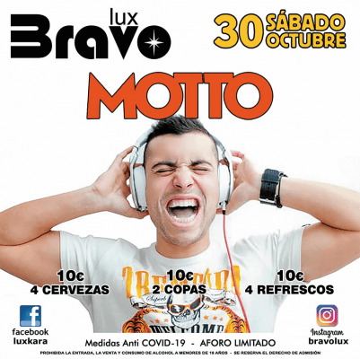 El sábado 30 de octubre se encargará de pinchar Motto Inda House, DJ y productor que ha formado parte de una de las emisoras de radio especializadas en música electrónica más potentes del país: “LOCA FM”. Además, este pinchadiscos puede presumir de ser el ganador del concurso de DJ’s “Europa Baila” de Europa FM.