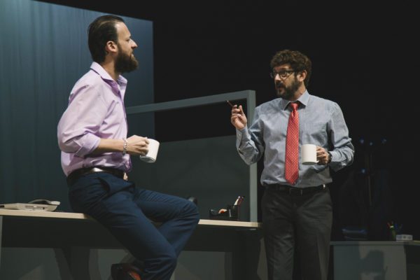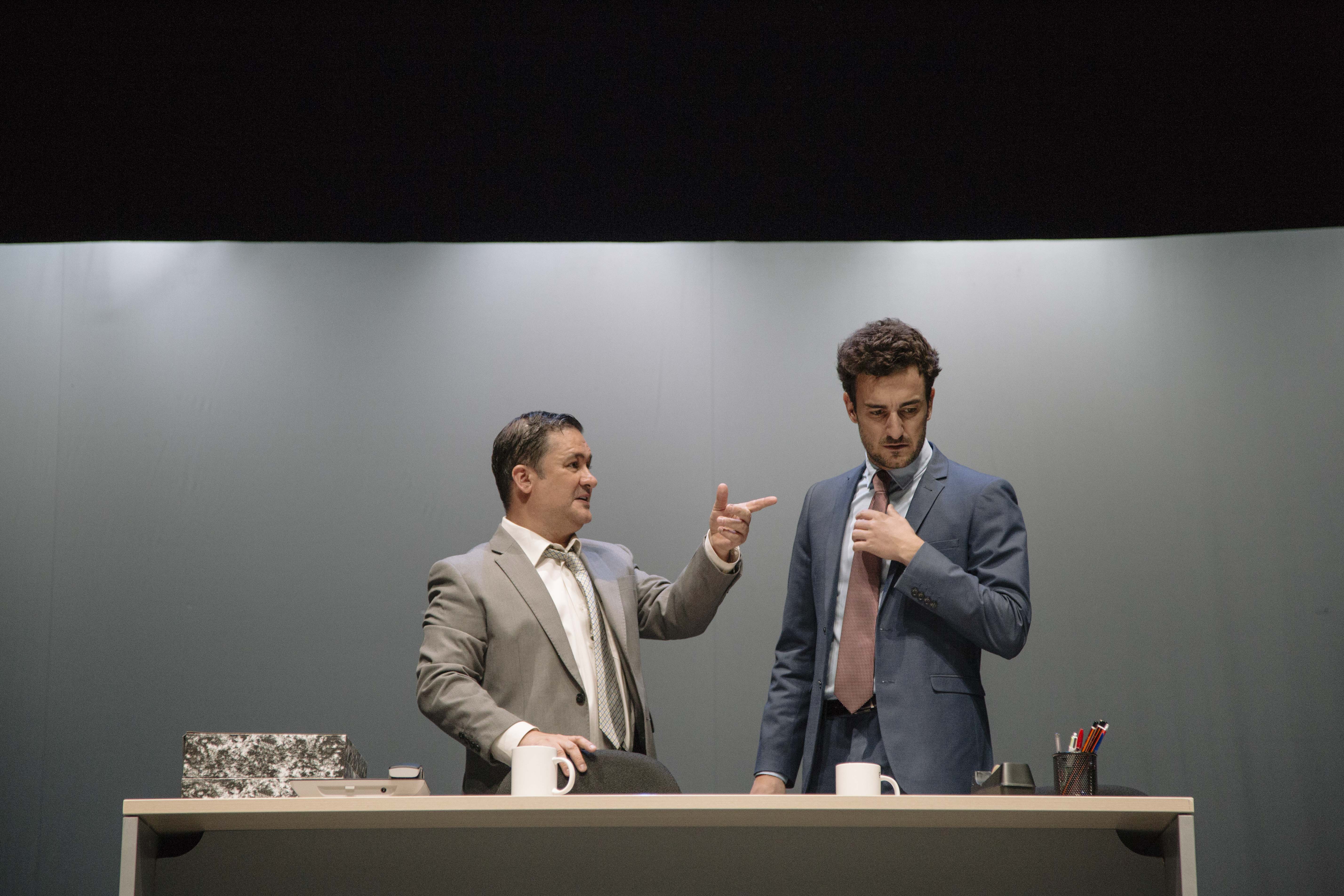 Los directores de la película dirigen esta versión teatral con seis espléndidos actores y con la misma carga dramática, igual mordacidad en los diálogos y una escenografía minimalista. Todo el poder sigue estando en el texto, en los miedos que atenazan el mundo laboral y las miserias frente al poder.