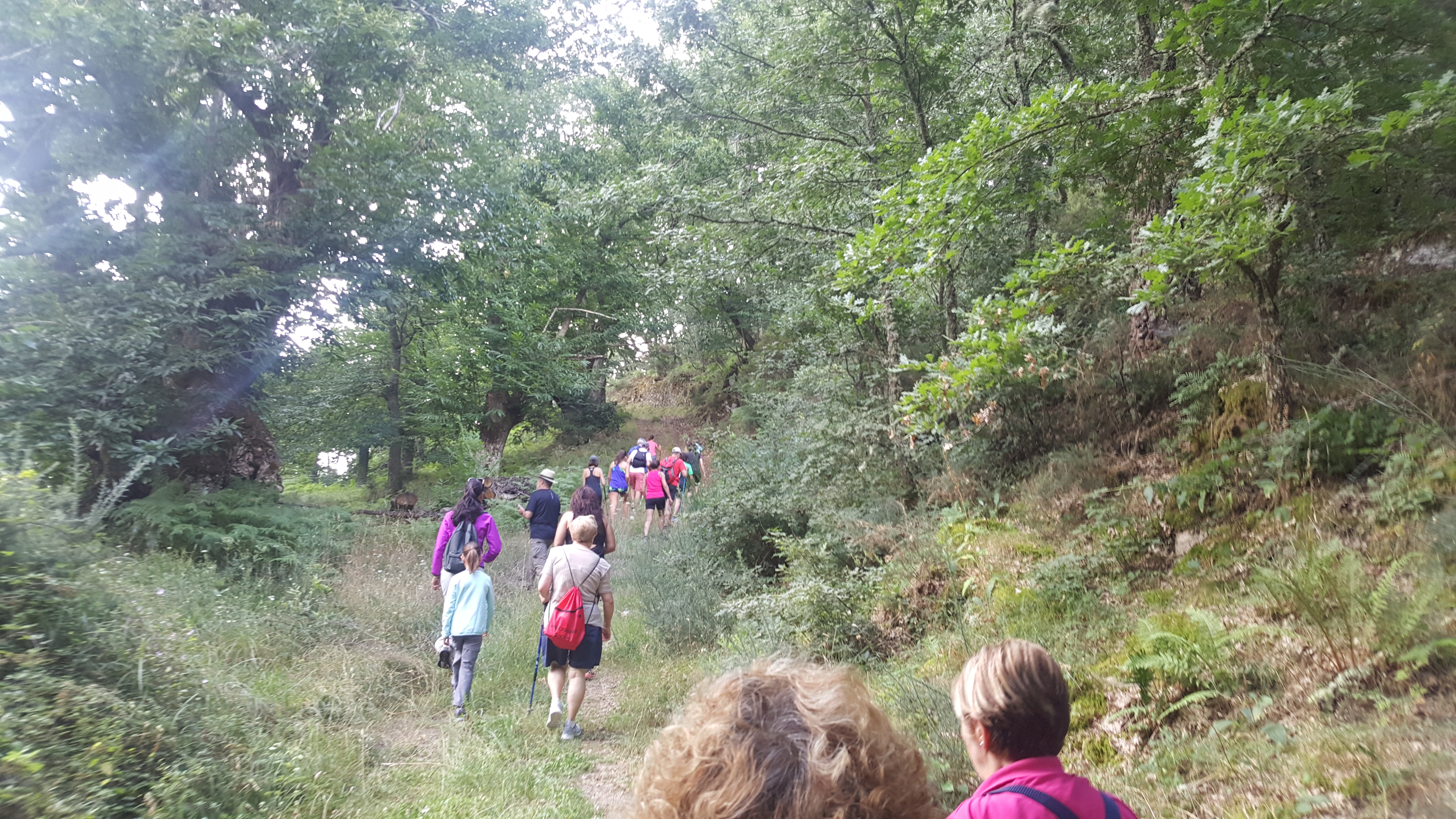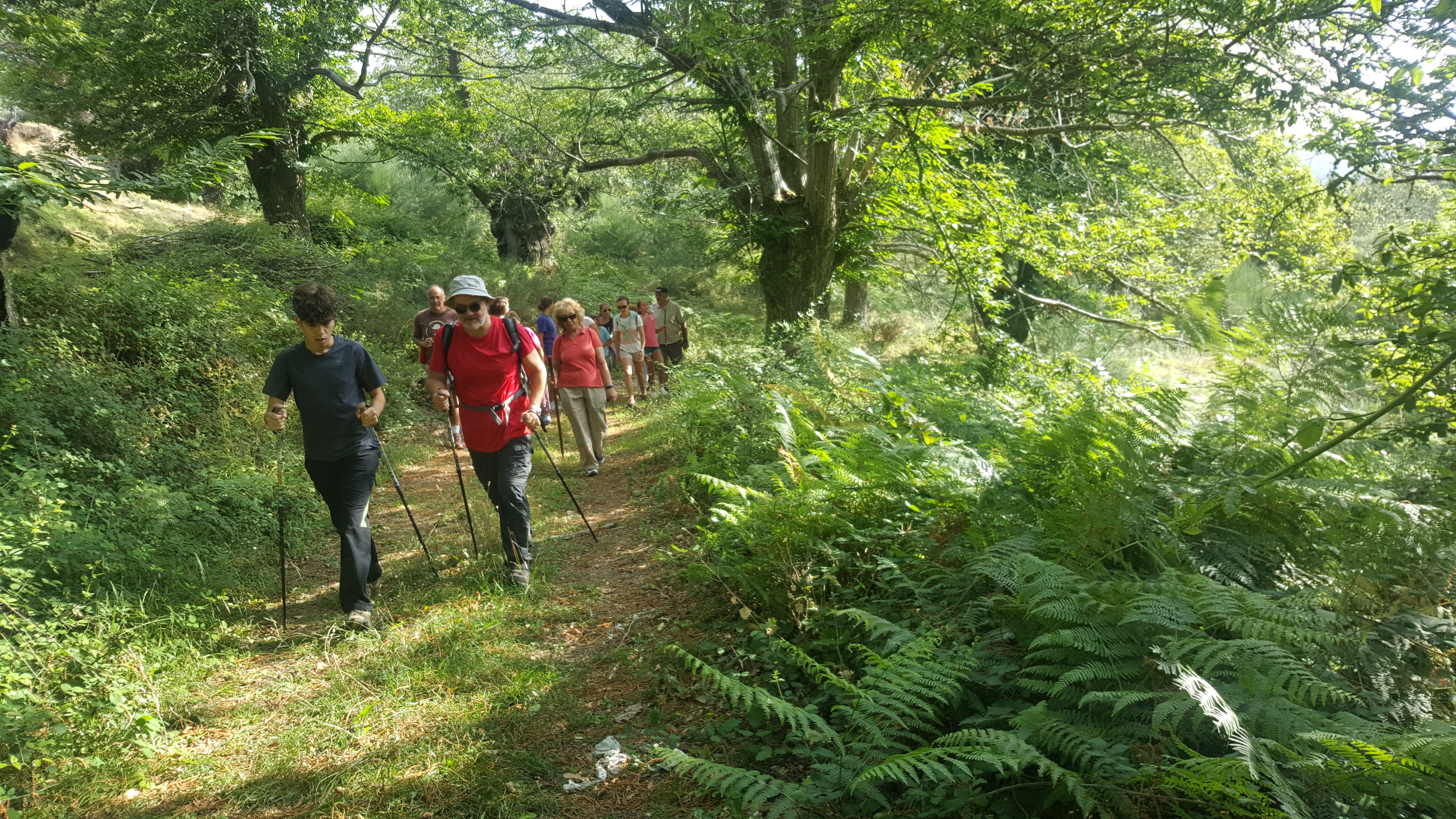 Grandes y pequeños se adentraban por entre sotos de castaños, haciendo un agradable paseo de por medio de la naturaleza. Compartiendo parte de la ruta con el ayuntamiento vecino, tras cruzar el Río San Lázaro, llegaron a la imensidad del castaño de Pombairiños, en Rozavales, que no deja a nadie indiferente y hace que uno se sorprenda una y mil veces de su grandeza.